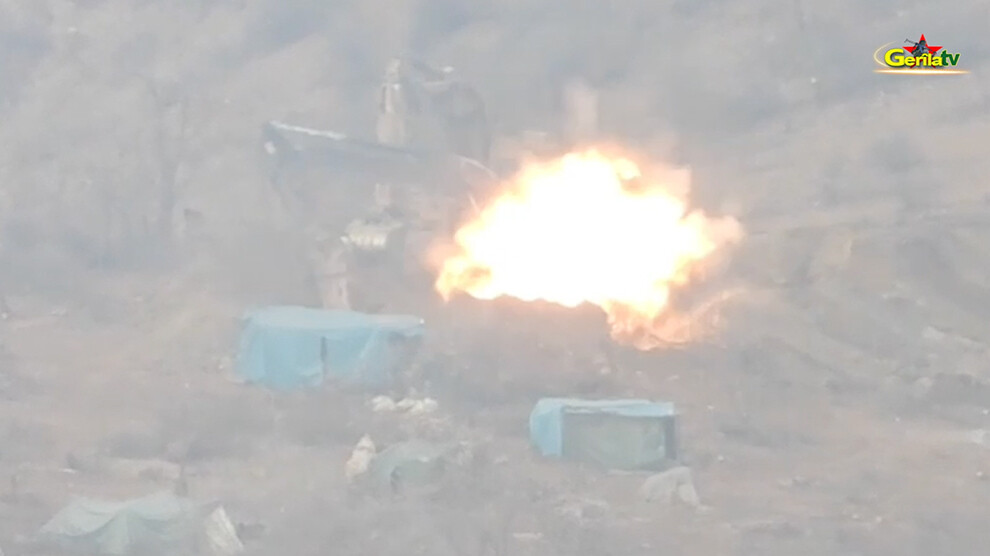 HPG/YJA Star gerillaları, Girê Amediyê Direniş Alanı’nda yol yapmaya çalışan işgalcilere ait kepçeyi ağır silahlarla vurarak imha etti.