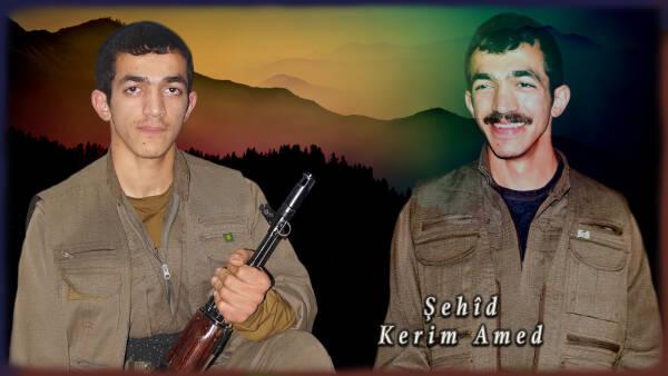 “Metîna bölgesinde işgalci Türk ordusuna ağır darbeler vuran, sonuç alıcı eylemlerin öncülüğünü yapan, cesareti ve yiğitliği ile bilinen Kerim Amed yoldaşımız, 11 Ağustos 2023 günü gerçekleşen düşman saldırısında şehadete ulaştı. Cesareti yüksek Apocu bir militan olan Kerim yoldaşımız, taktikteki yaratıcılığını, keskin vuruş kabiliyetini ve sonuç alıcı tarzını yer aldığı her eylemde pratikleştirdi. Uzmanlaşan hareketli gerilla tim savaş tarzını yetkince uygulayarak öncülük etti ve yeni dönem gerillacılığının örnek gerillalarından biri oldu.