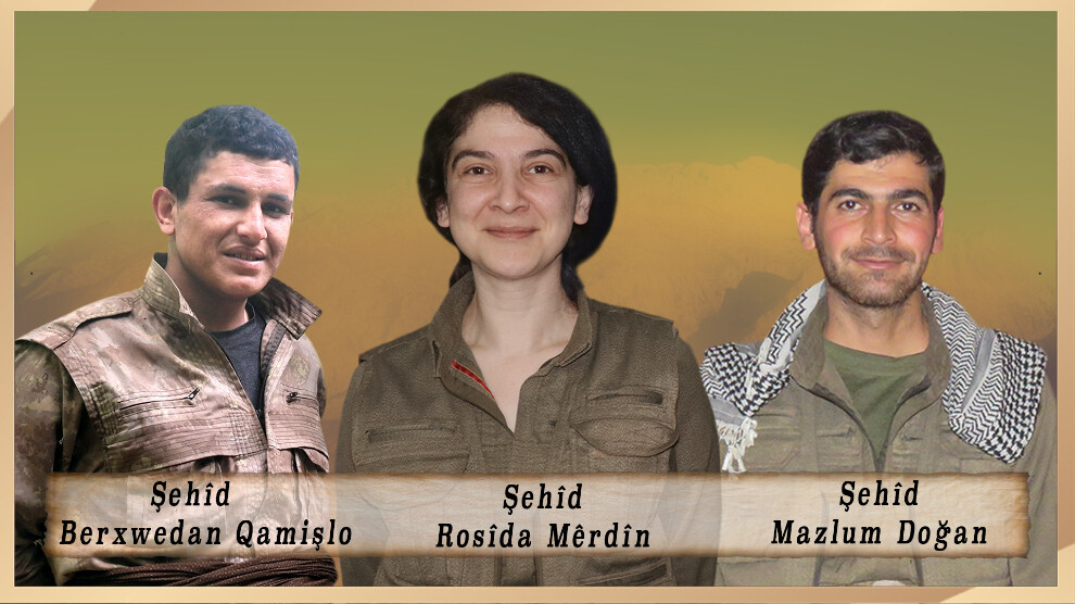 BEHDÎNAN- Şehadete ulaşan 3 gerillanın kimliklerini açıklayan HPG, “Rosîda, Mazlum ve Berxwedan yoldaşlarımızın bizlere devrettiği özgürlük mücadelesini onlara layık olmanın bilinciyle daha da büyüteceğimizin sözünü veriyoruz” dedi.