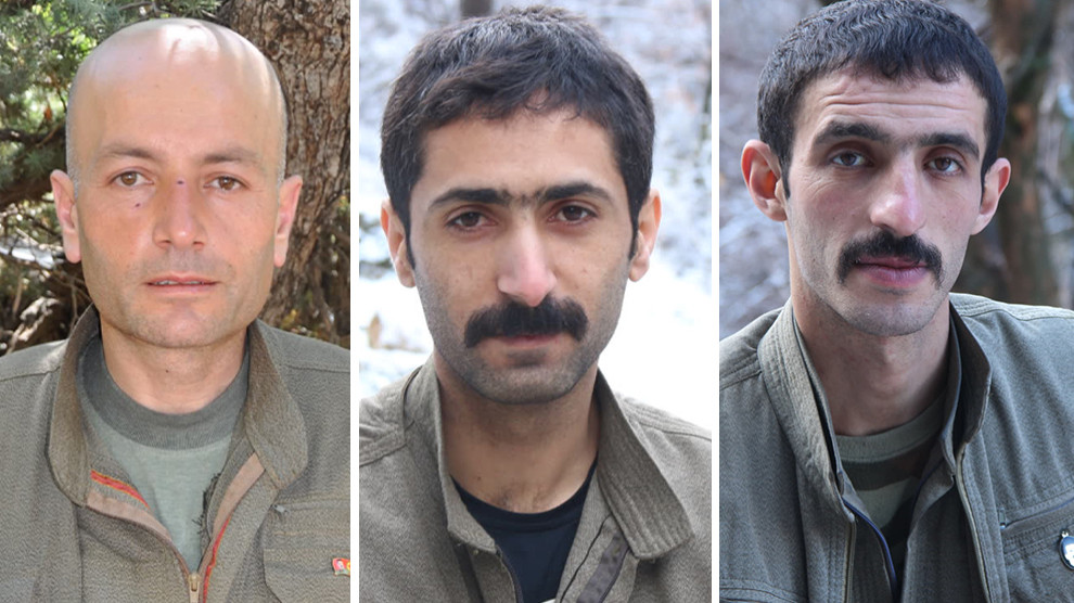 “16 Nisan 2020 tarihli açıklamamızda, 15 Nisan günü öğlen saatlerinde işgalci TC ordusunun Medya Savunma Alanları’ndan Kandil bölgesinde bulunan Zinî Wertê alanına yönelik gerçekleştirilen hava saldırısı sonucu 3 arkadaşımızın şehadete ulaştığı bilgisini kamuoyu ile paylaşmıştık. Şehadete ulaşan kahraman yoldaşlarımızın kimlik bilgileri şöyledir: