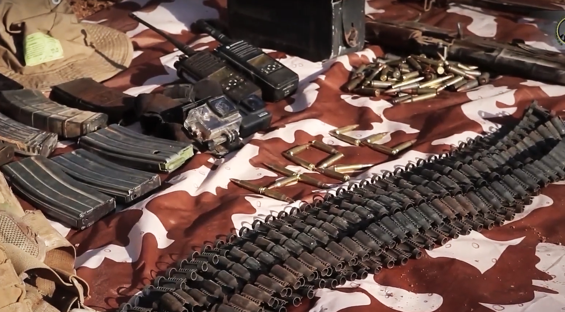 Ele geçirilen askeri teçhizat arasında 1 adet M-16 silahı ve 3 şarjörü, 1 adet AK-47 silahı ve 4 şarjörü, 2 telsiz, 2 askeri yelek, BKC silahına ait 2 mermi zinciri ve mühimmat sandığı, bir baş kamerası ve çok sayıda AK-47 ve M-16 mermisi yer aldı.