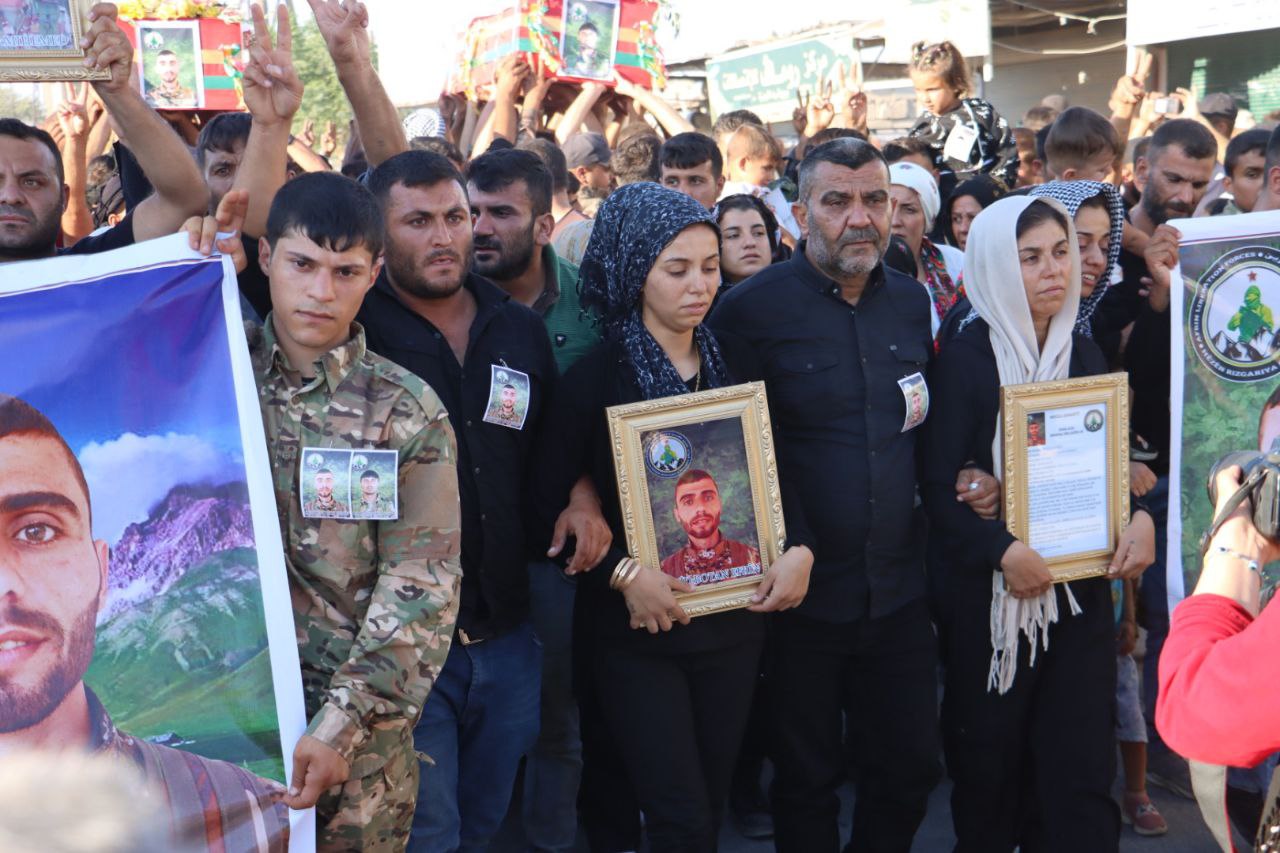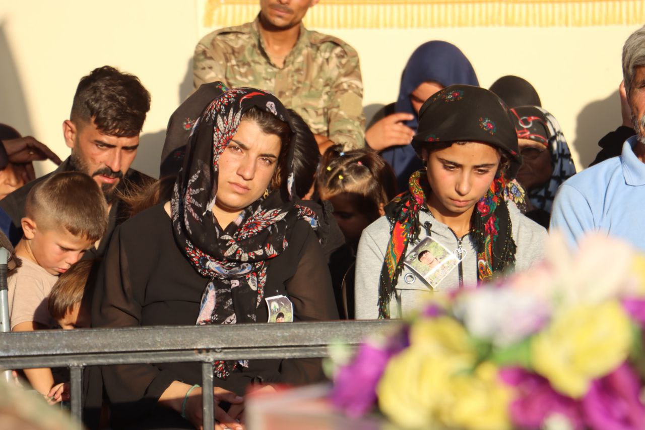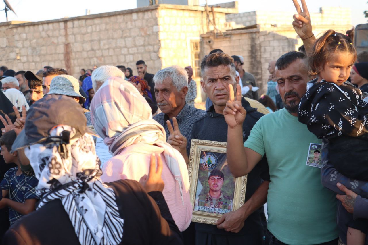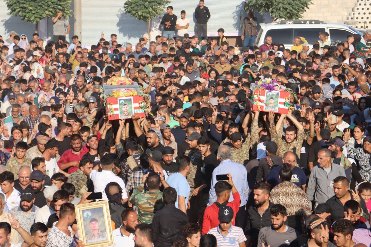ŞEHBA- 12 Ağustos 2024’te şehadete ulaşan Efrin Kurtuluş Güçleri (HRE) savaşçısı Botan Efrîn (Ebdilrehman Ehmed) ve şehit Behdîna Efrîn (Mihemed Tenbel), dün Fafînê beldesindeki Şehit Zozan Amanos Şehitliği’nde son yolculuklarına uğurlandı.