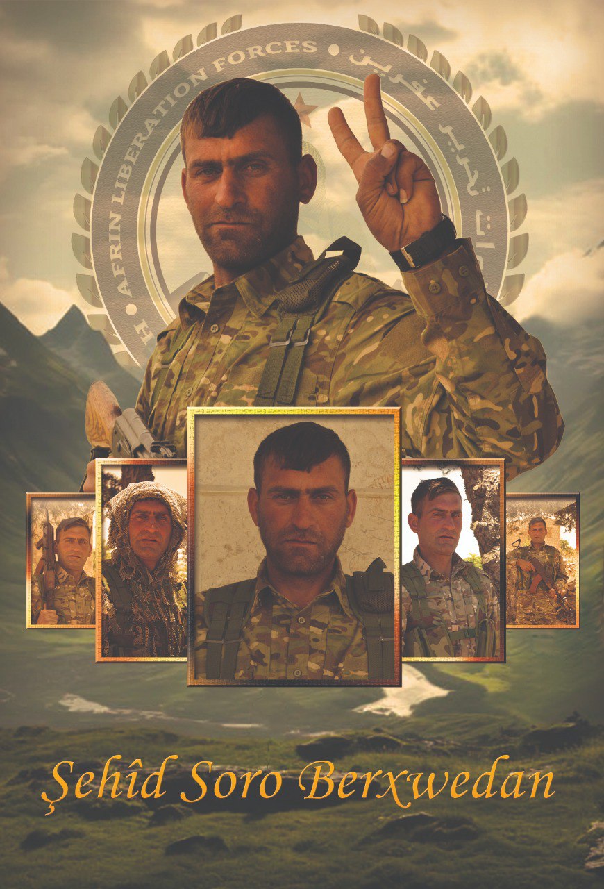 Efrin Kurtuluş Güçleri olarak, yoldaşımız şehit Soro Berxwedan’ın değerli ailesinin şahsında tüm şehit ve yurtsever ailelerimize başsağlığı dileklerinde bulunuyoruz. Yoldaşları olarak, Soro yoldaşın bize devrettiği devrim görevlerini yerini getireceğimizin sözünü yineliyor, onun şahsında tüm devrim şehitlerimizi saygıyla andığımızı belirtmek istiyoruz.