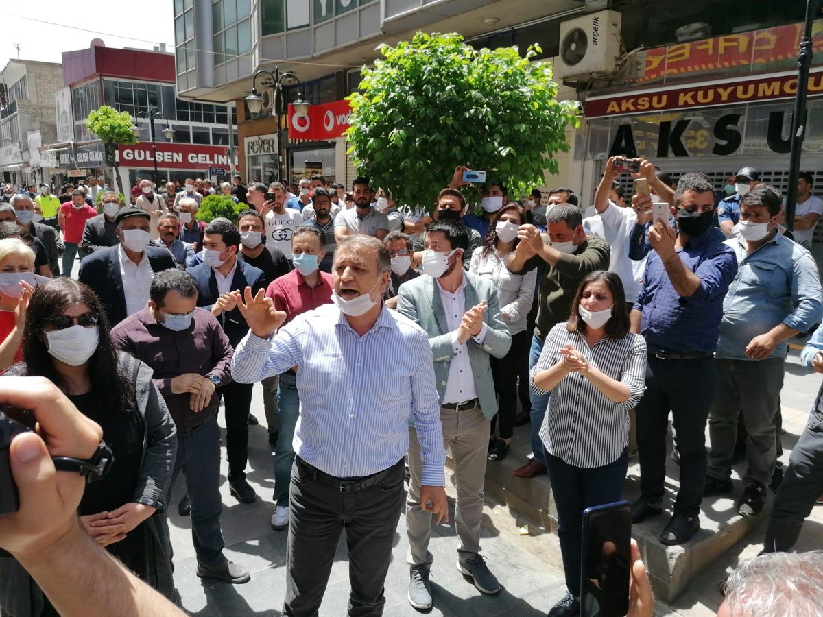 Cumhuriyet Caddesi’nde işgalci polis tarafından durdurularak, yürüyüşleri engellenen kitle adına konuşan HDP Antep Milletvekili Mahmut Toğrul, seçimlerde Iğdır’da tüm partilerin HDP’ye karşı birleştiğini hatırlattı, “Ama belediye yönetimini halkımız bize verdi. Şimdi 31 Mart’ta bize karşı birleşenler, halkın belediyesine darbe ile el koyuyorlar” dedi.