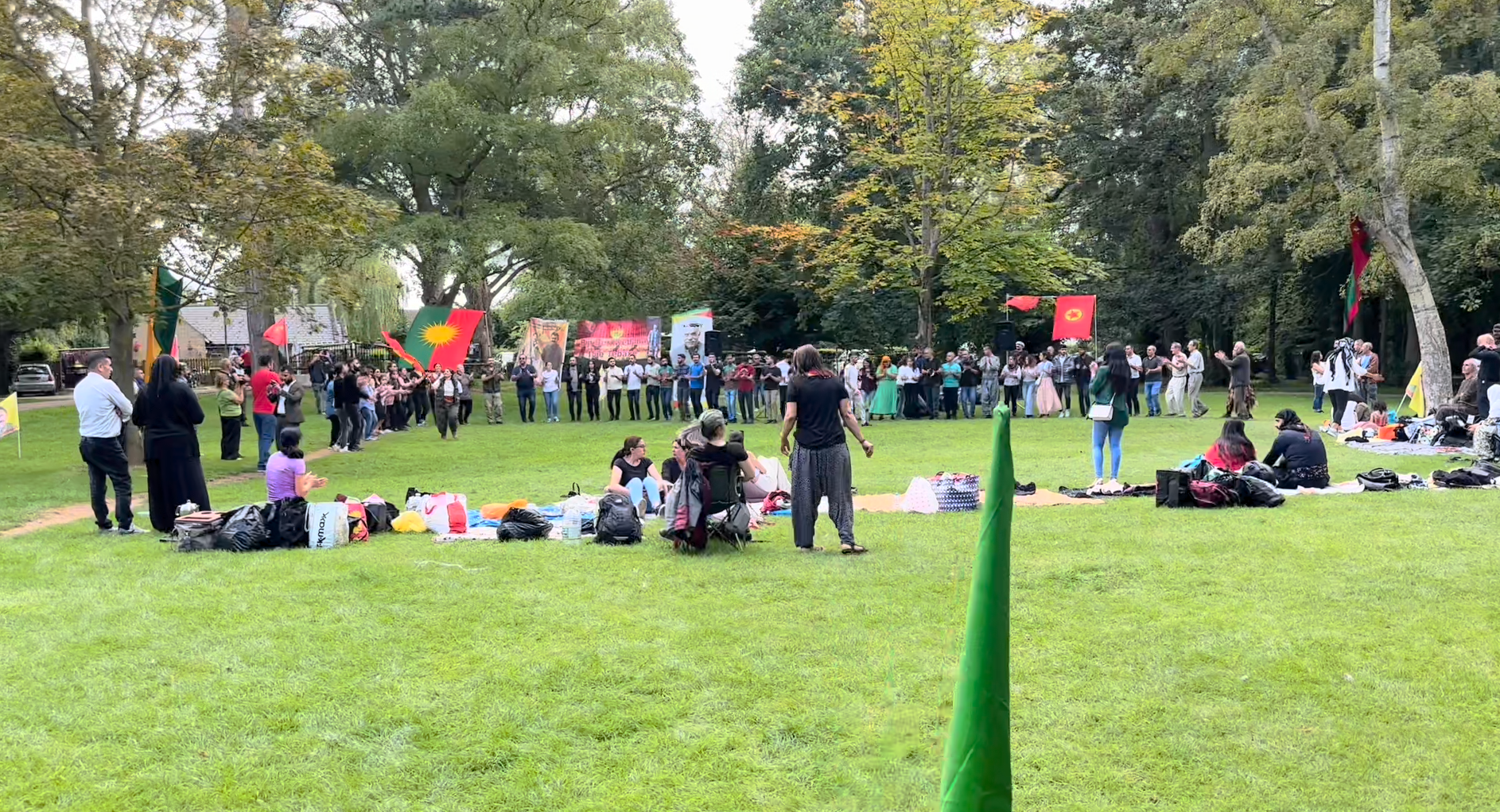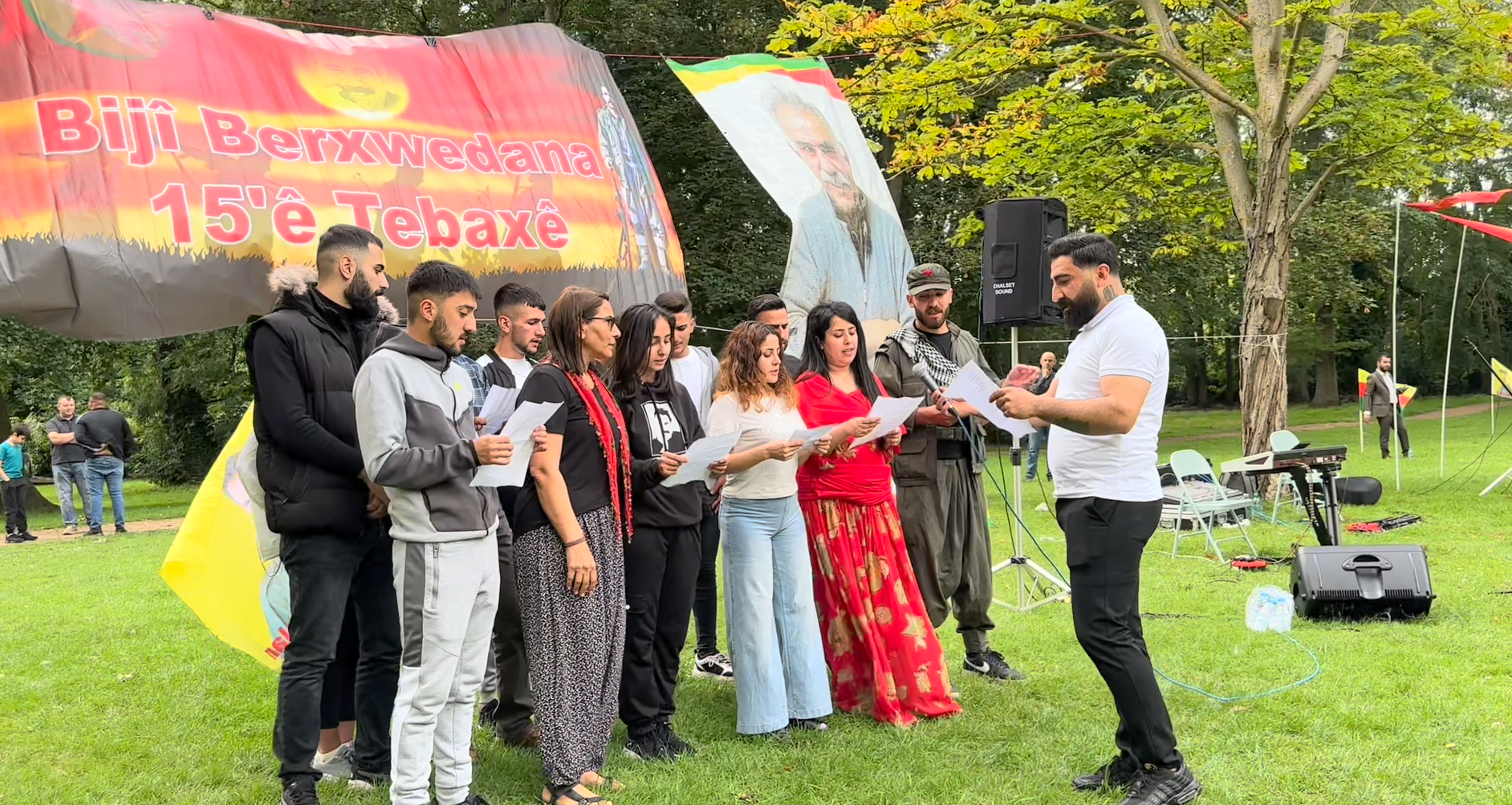 Cherry Hinton Parkı’nda gerçekleşen kutlamaya Kürdistanlılar yöresel elbiseleriyle katılırken, parkın dört bir yanına PKK, TCŞ bayrakları ile Önder APO’nun flamaları asıldı. Sahneye Önder APO ile 15 Ağustos atılımının efsanevi Komutanı Mahsun Korkmaz’ın (Egid) resimleri ve 15 Ağustos’u selamlayan pankart asıldı.