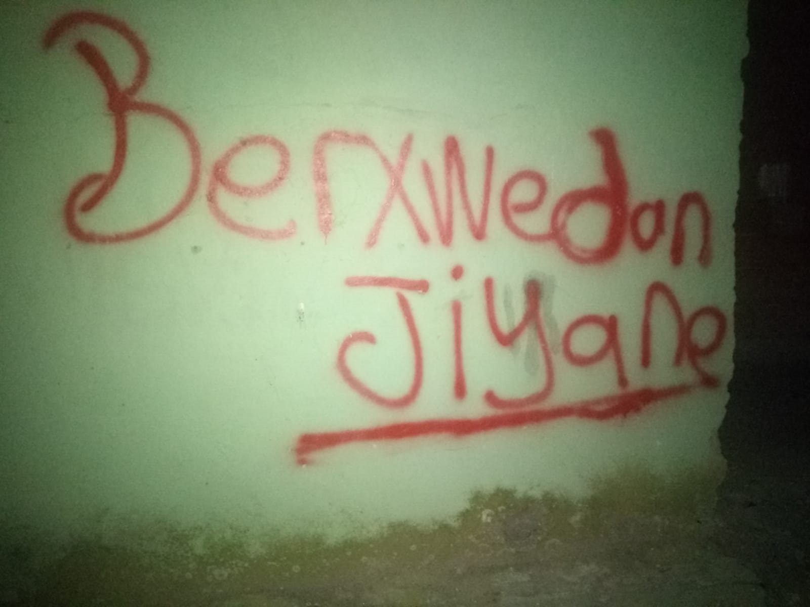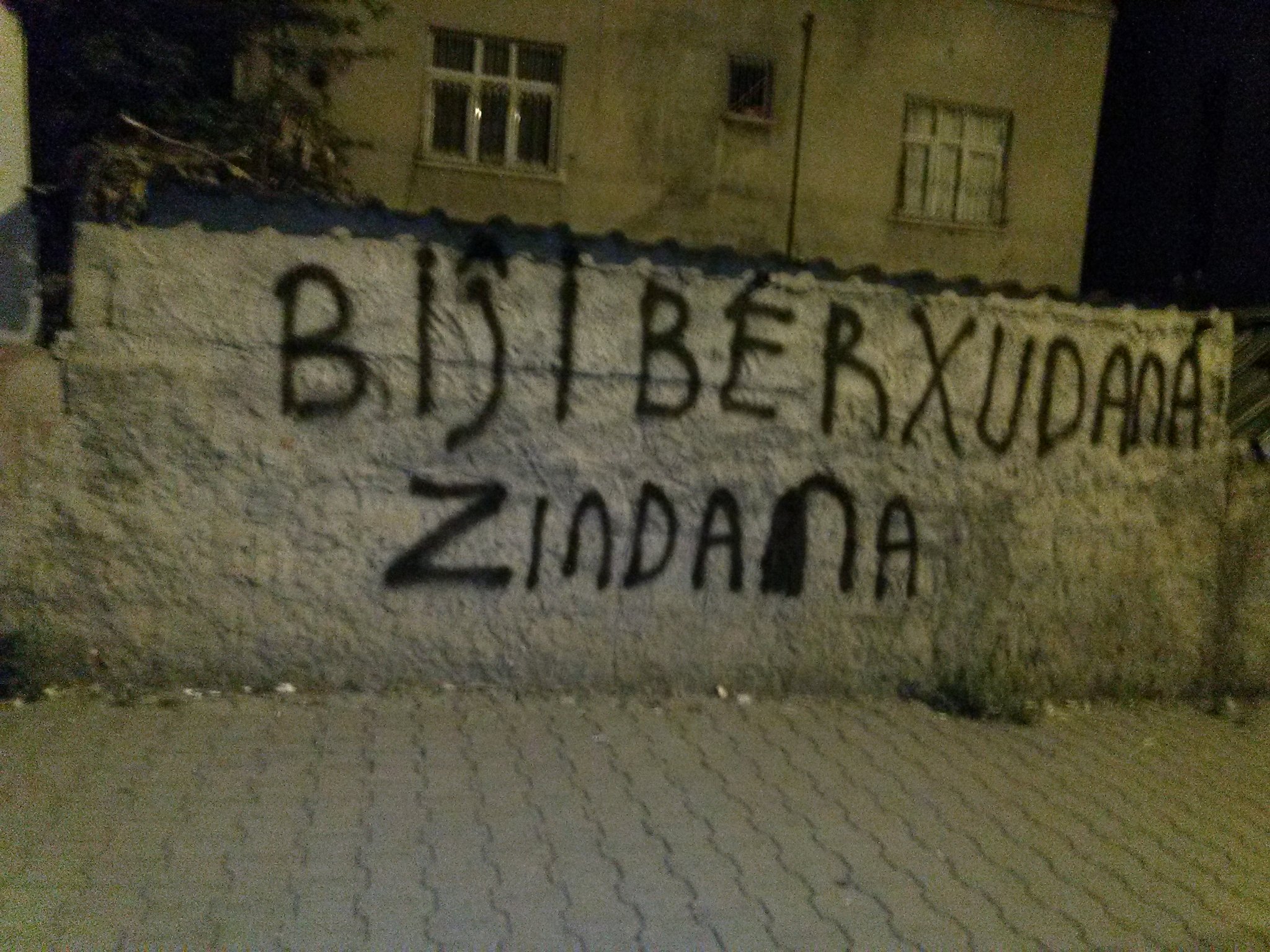 AMED – Şehit Baran Mawa, Şehit Soro Farqîn ve Şehit Dılgeş Farqîn İntikam Birimleri Amed’in Farqîn ilçesinde Halklar Önderi Abdullah Öcalan üzerindeki tecride karşı ve devam eden açlık grevi ve ölüm orucu direnişlerine dikkat çekmek amacıyla duvar yazılama eylemi gerçekleştirdi.