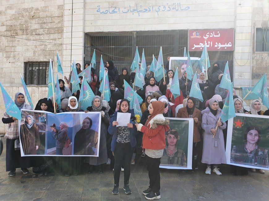 Reqa Kantonu Genç Kadınlar Birliği Ofisi üyesi Hîbe Siwêhe tarafından okunan açıklamada, 27 Kasım 2024’ten bu yana işgalci Türk devleti ve çetelerinin bölge halkına yönelik soykırım saldırıları gerçekleştirdiği hatırlatıldı.