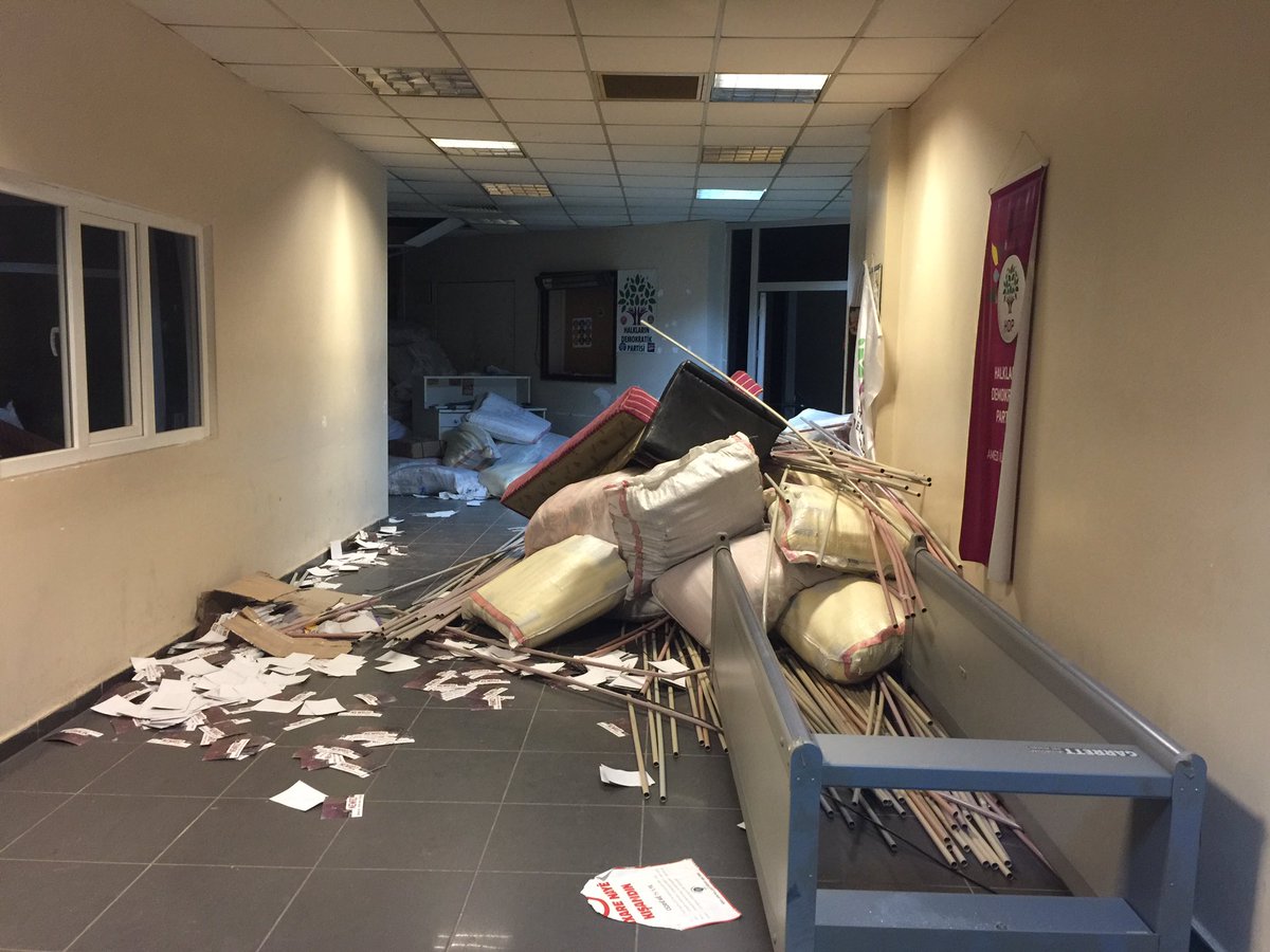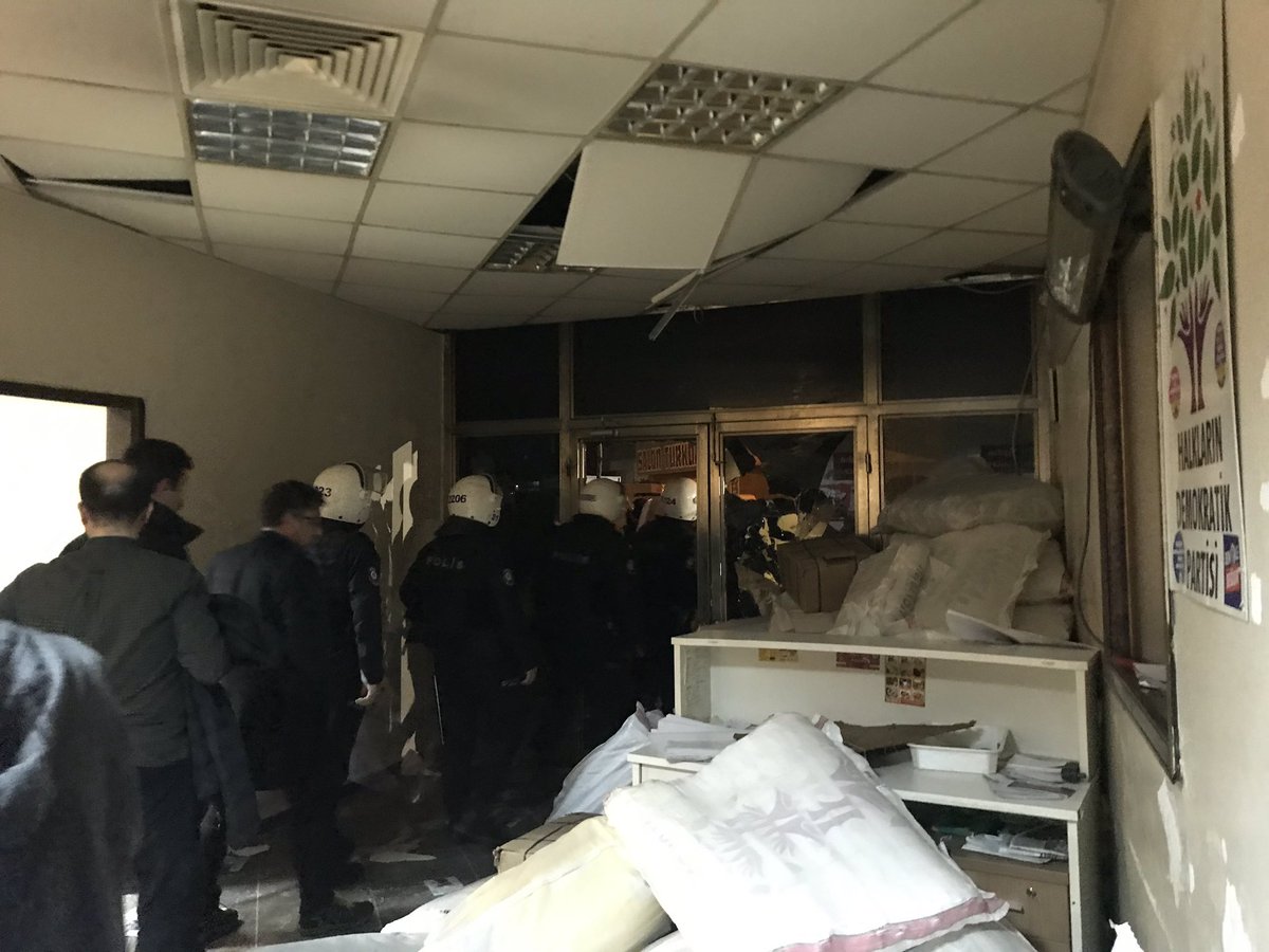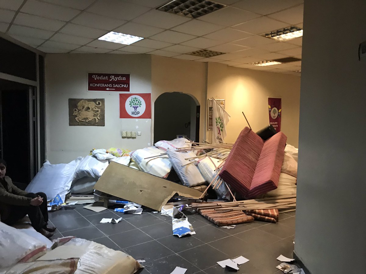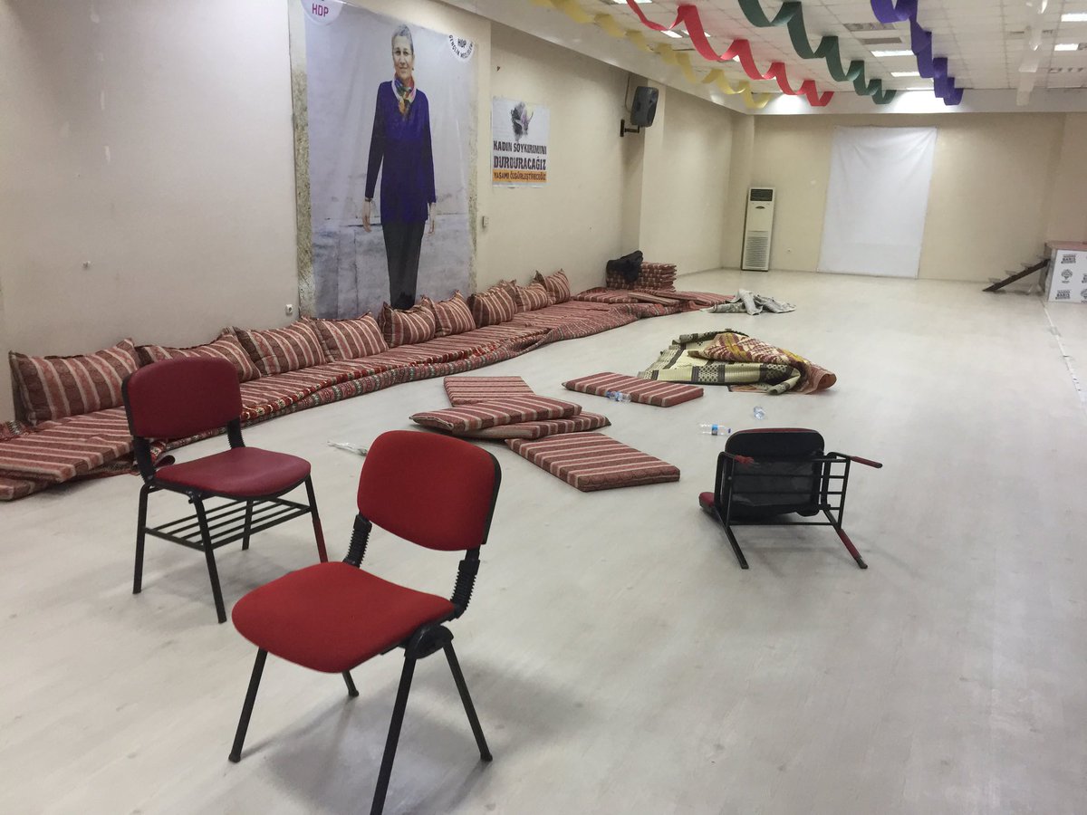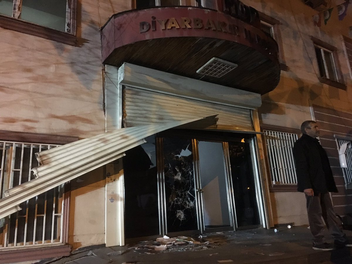 Akşam saatlerinde il binasının önüne çevik kuvvet polisleri yığınak yapılarak, aralarında HDP milletvekillerinin de bulunduğu 10 kişinin açlık grevi eylemini sürdürdüğü Amed İl Binası’na saldırara, dış kapıyı kırarak içeriye girdi. İl binasının kapısı ve pencereleri kırdı. Binanın içerisinde de birçok yer saldırarak eşyaları kırarak, talan etti.