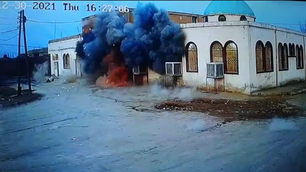 İşgalci Türk devleti ve çetelerinin Zirgan’a yönelik saldırılarında caminin hedef alındığı anlar görüntülendi.