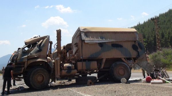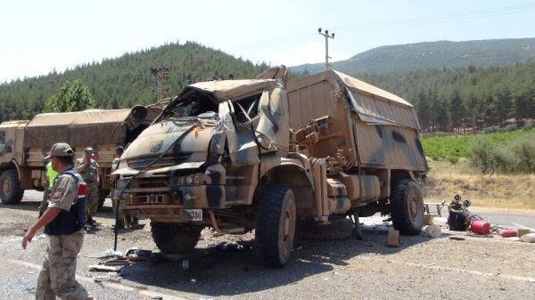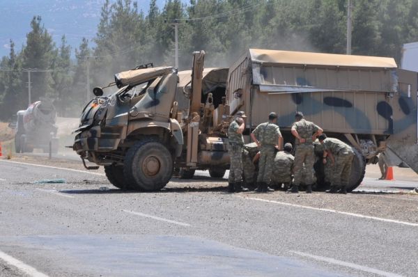 3 araçlık askeri konvoyda meydana gelen kazada işgalci Astsubay A.R.İ. ve Uzman Çavuş M.B., yaralandı.