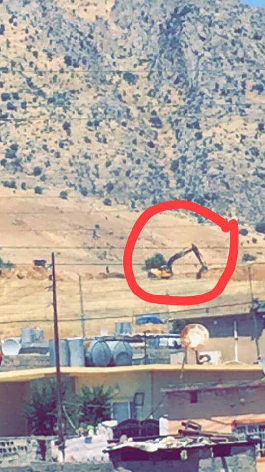 ŞÊLADIZÊ – İşgalci Türk askerleri Dıhok’un Amediye ilçesine bağlı Şêladizê’de bulunan Sirê Askeri Üssü’nün etrafını iş makineleriyle hendek kazıyor.