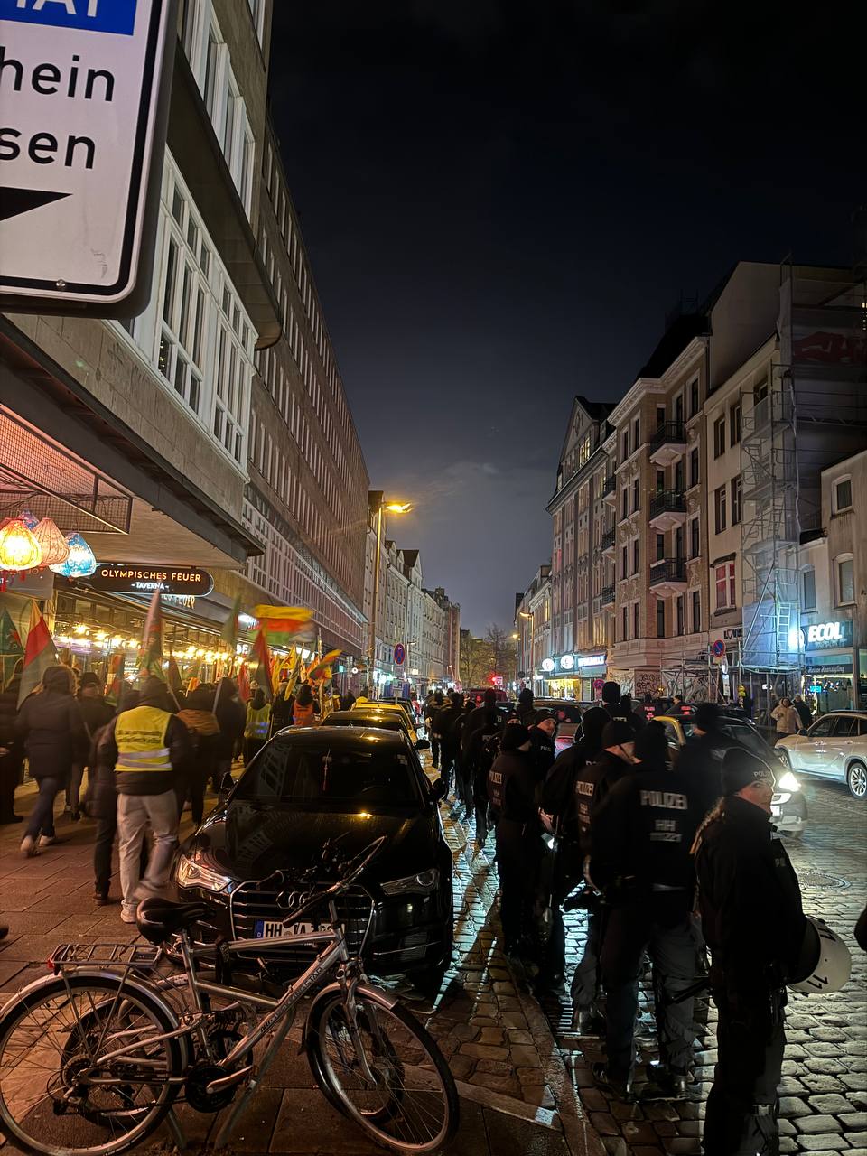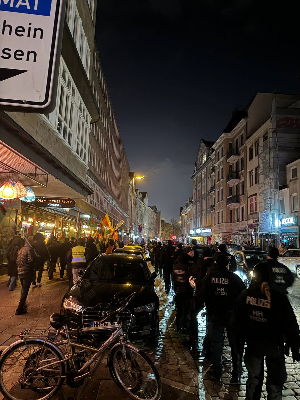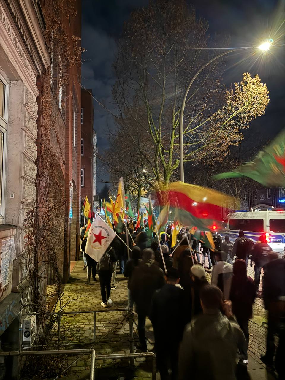 HAMBURG – Almanya’nın Hamburg kentinde, Tevgera Ciwanên Şoreşger (TCŞ), Rojbin Kadın Meclisi ve Hamburg Demokratik Kürt Toplum Merkezi (DKTM) öncülüğünde Rojava saldırılarına karşı yapılan yürüyüşe, Alman enternasyonalistler ve Türkiyeli sol gruplar da destek verdi. Yürüyüş öncesi TCŞ adına okunan basın açıklamasında, İşgalci Türk devletinin Minbic ve Rojava’ya yönelik saldırıları kınandı. Gençler, Kürt halkına yönelik soykırım tehlikesine karşı tüm Kürdistan gençlerini direnişe çağırdı.