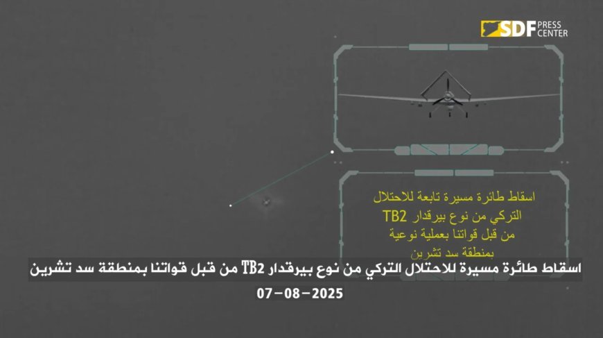 HABER MERKEZİ- Demokratik Suriye Güçleri (QSD), dün (7 Ocak) Tişrin Barajı bölgesinde işgalcilere ait bir Silahlı İnsansız Hava Aracı (SİHA) düşürdü.