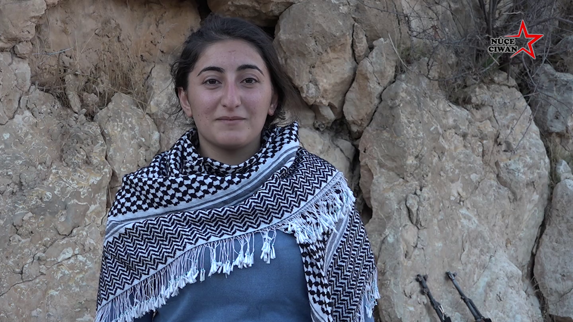 18 yaşındayım. 1 aydır PKK’ye katıldım. Ben arkadaşlardan etkilenerek karar verdim ve geldim. Geldiğimde gördüm ki arkadaşlığı çok güzel, herkesten etkilendim. Onların bakış açısıyla, konuşmalarıyla, duruşlarıyla çok etkilendim. Öncesinde de Bakûrê Kurdistan’da iken sürekli Türk devletinin işkencesine, faşizmine maruz kalıyorduk. Sürekli kadınlar eziliyor tecavüze uğruyor, genç arkadaşlarımızı fuhuş uyuşturucuya ve ne kadar kötü şey varsa onlara alet ediyorlardı. Ve bende buna istemeden şahit oluyordum.