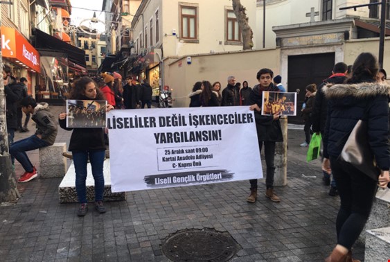8 Haziran günü “Karneler sizin gelecek bizim” şiarıyla Kadıköy’de yaptıkları karne eyleminde işkenceyle gözaltına alınan liseliler, 25 Aralık’da görülecek duruşmaya çağrı yaparken yine polisin işkencesiyle gözaltına alındılar.