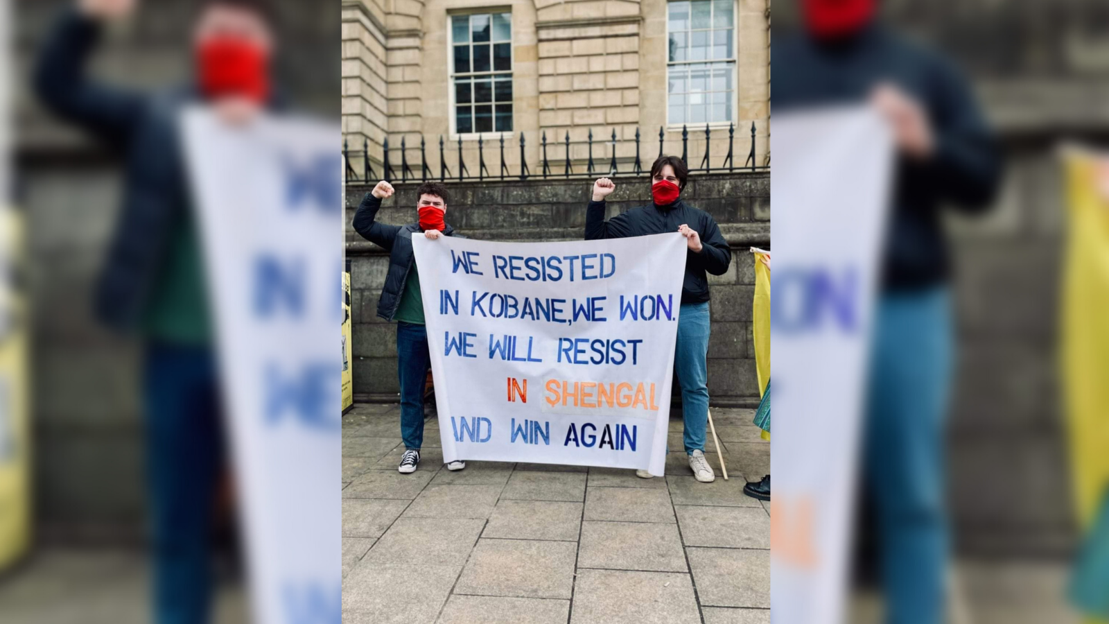 Gençler, “Kobanê’de direndik, kazandık. Şengal’de de direneceğiz ve yine kazanacağız” yazılı bir pankart açtılar. Miting esnasında sık sık “Bijî Berxwedana Şengal”, “Bımıre Îxanet” ve “Bijî Serok APO” sloganları attıldı. Eyleme kısa bir açıklama ile son verildi.
