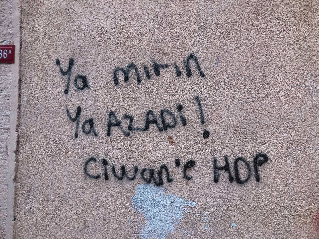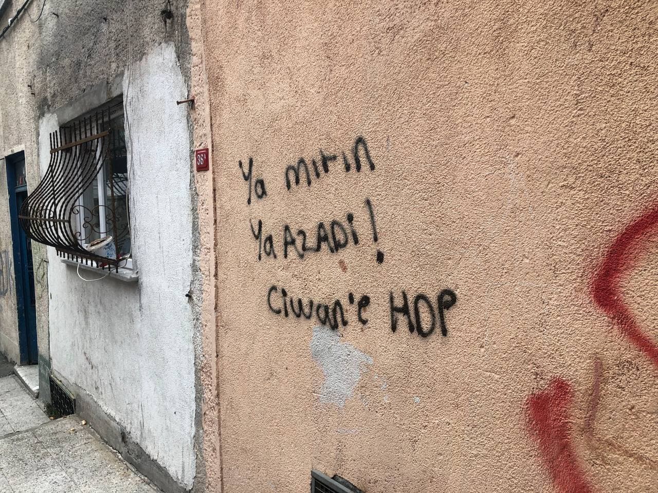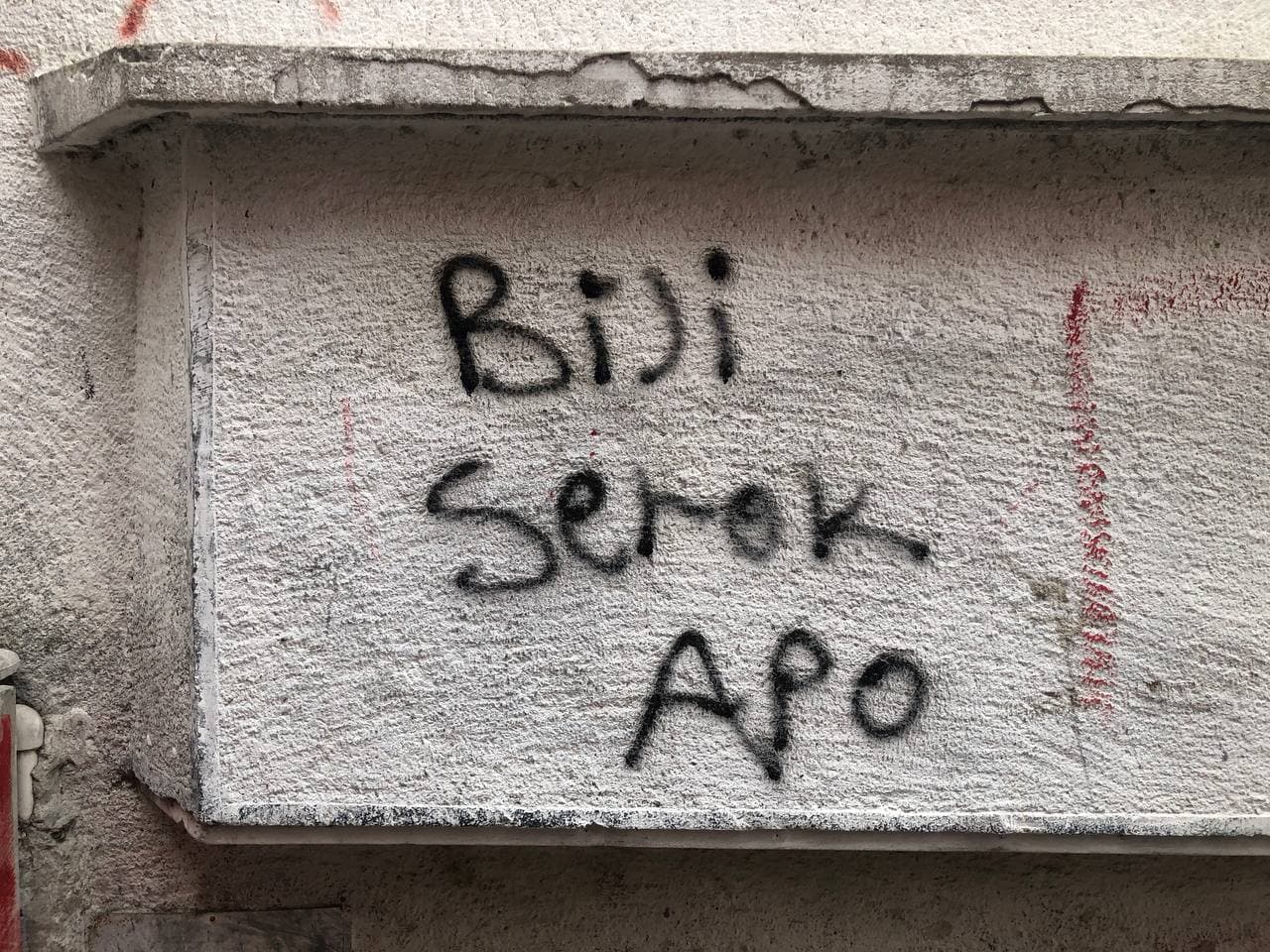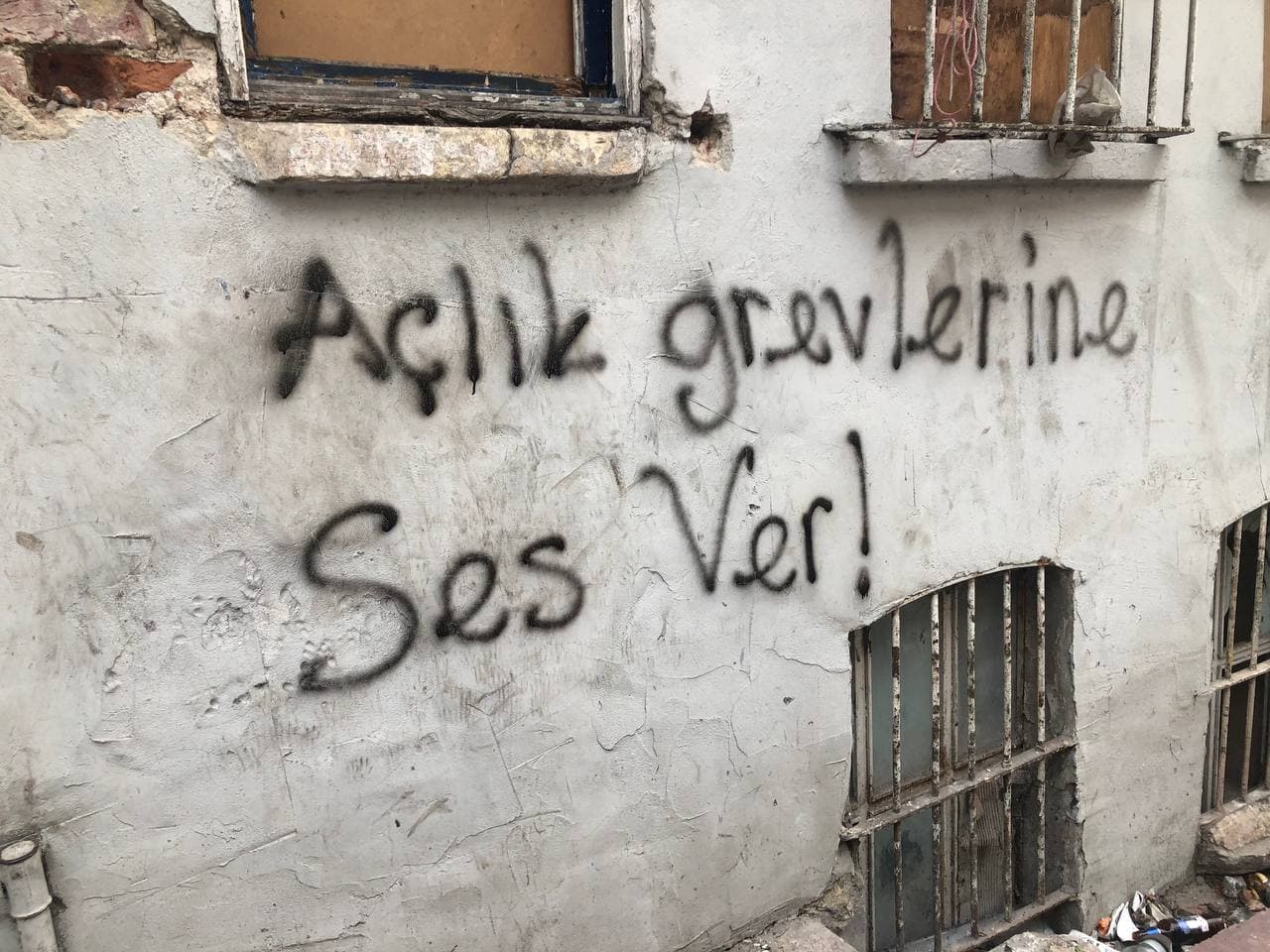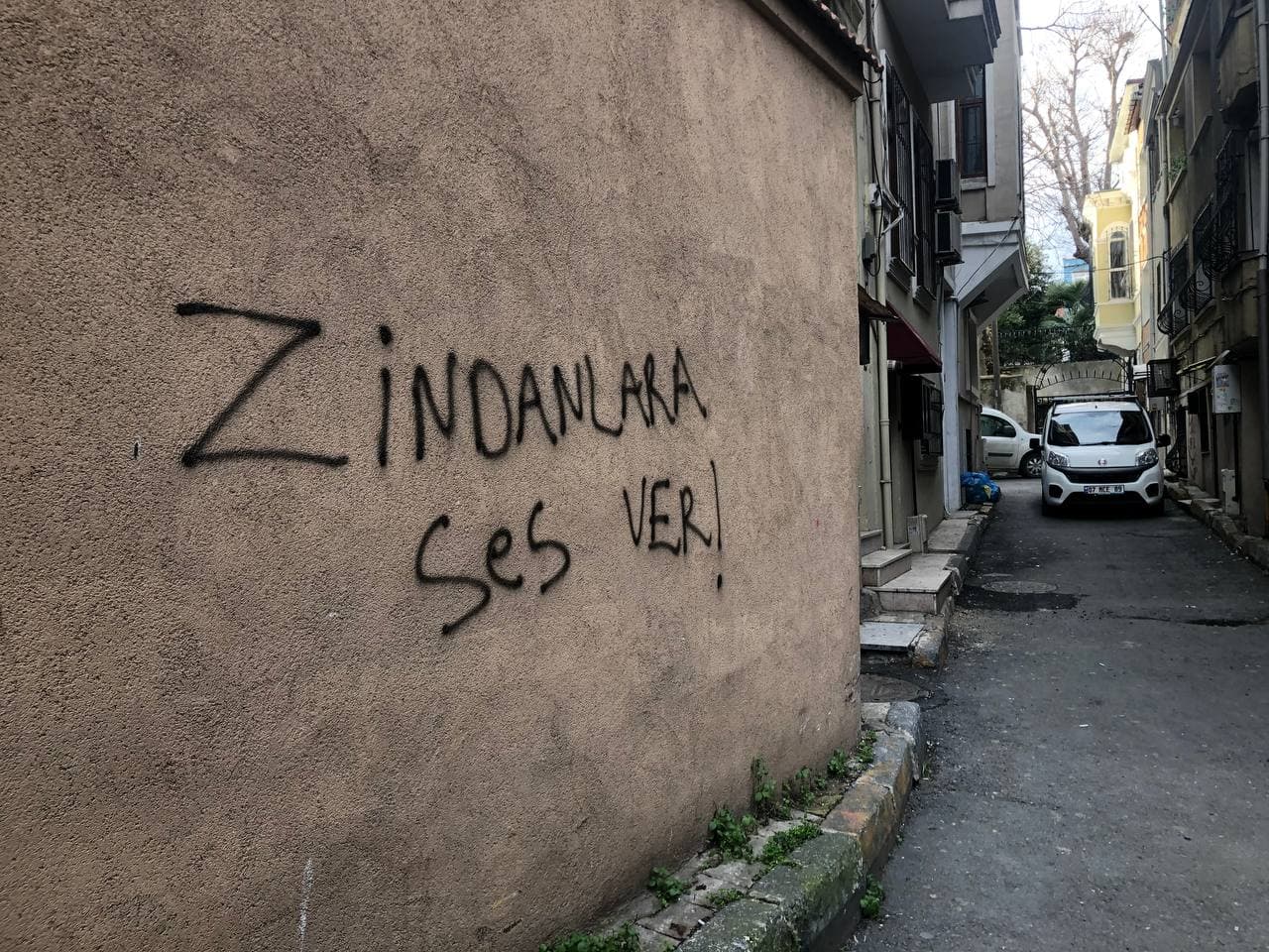 HDP İstanbul Gençlik Meclisi zindanlarda büyük bir irade ve kararlılıkla direnen tutsaklara destek amaçlı İstanbul’un Beyoğlu ilçesi Tarlabaşı mahallesinde yazılama çalışması yaptı. Yazılamalarda “Bijî Serok Apo”, “Ya Mirin Ya Azadî”, “Tecride Son”, “Zindanlara Ses Ver”, “Açlık Grevine Ses Ver” sloganları öne çıktı.