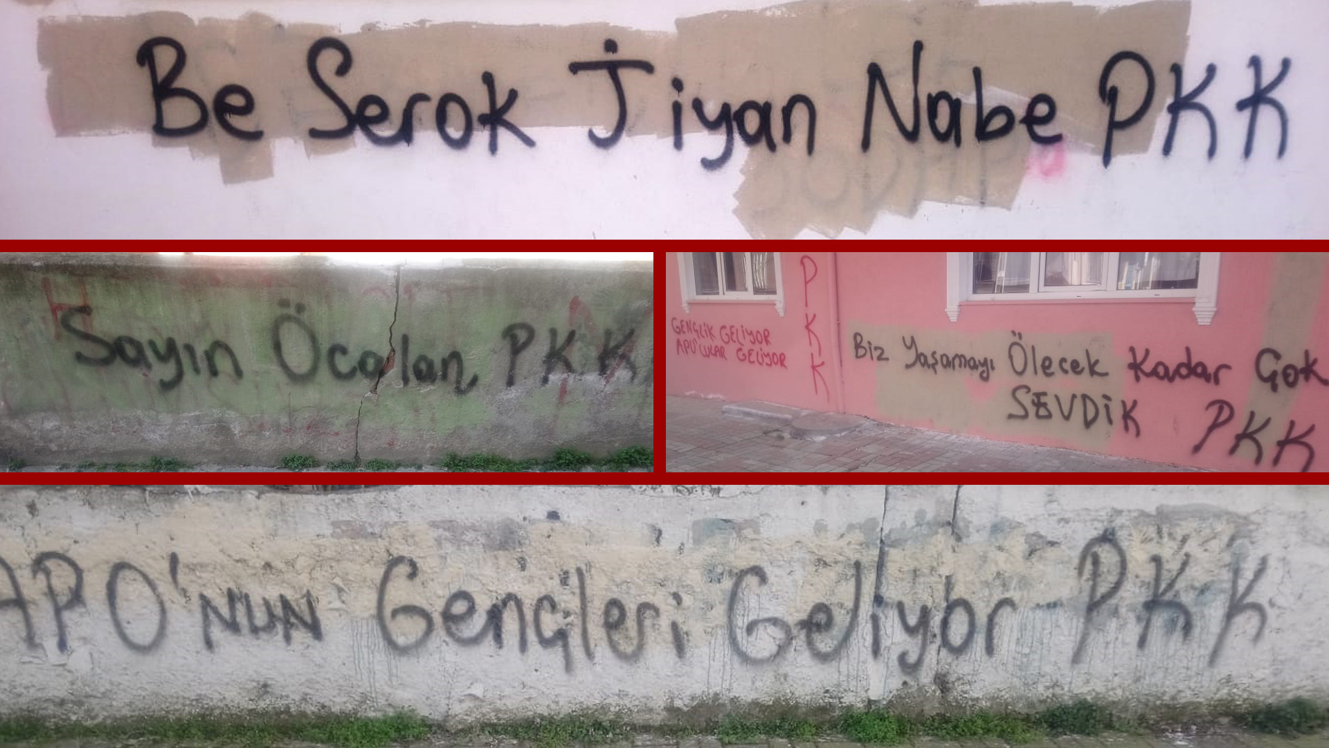 Yapılan yazılamaları bazıları şöyle: “Biz Yaşamayı Ölecek Kadar Çok Sevdik”, “Sayın Öcalan PKK”, “Önder Apo’nun Gençleri Geliyor” ve “Bê Serok Jiyan Nabe” yazılamalarını yaptı.