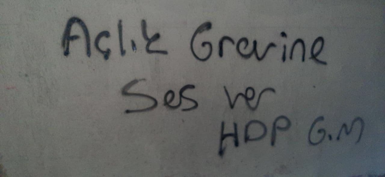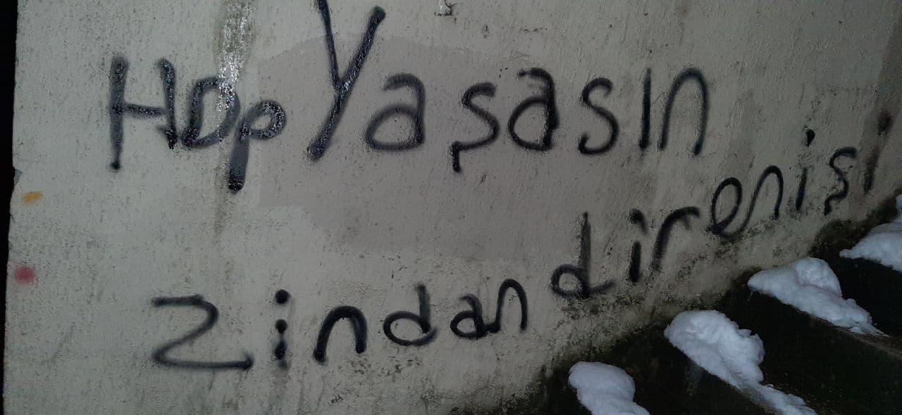 İstanbul Gençlik Meclisi Sancaktepe ilçesinde zindanlarda başlatılan süresiz-dönüşümlü açlık grevi direnişlerine destek amaçlı yazılama çalışması gerçekleştirdi. Yapılan yazılamada ”Tecridi Kır Özgürleş, Açlık Grevine Ses Ver, Tecride Karşı Direniş” sloganları öne çıktı.