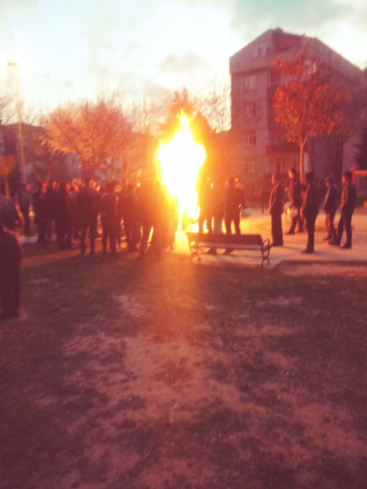 Newroz ateşi yakıldıktan sonra halk ateş etrafında sloganlar ile halay çekmeye başladı.