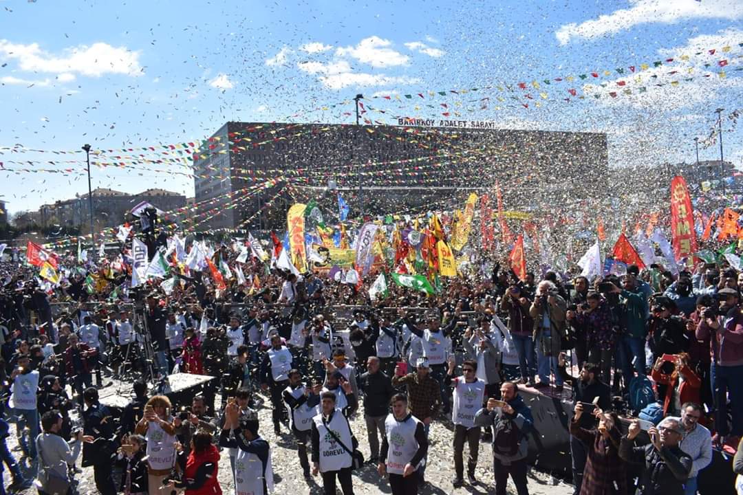 Binlerce kişinin katıldığı Newroz kutlaması tecridi protesto etmek üzere yaşamına son veren Zülküf Gezen, Ayten Becet, Uğur Şakar şahsında bu mücadelede yaşamını yitirenler adına yapılan saygı duruşuyla başladı. Saygı duruşu ardından Newroz ateşi atılan sloganlar eşliğinde açlık grevindeki tutukluların aileleri tarafından yakıldı. Barış anneleri zılgıtlarıyla Newroz ateşini harladı.