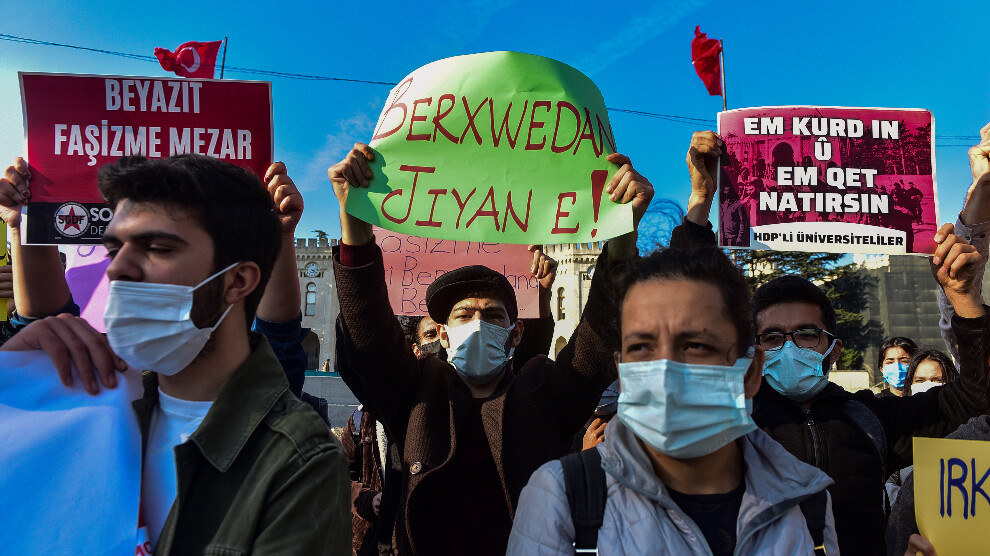 “Nitekim iktidar maşası küçük ortak Devlet Bahçeli’nin ‘elindeki kılıcı sallayarak’, ülkücü faşist çeteleri kastederek “elinizden Zülfikar’ı eksik etmeyin’ demesiyle birlikte faşist çeteler sosyal medyadan devrimcileri hedef göstermeye ve Kürt Kimliği üzerinden tehdit ve tacizlere başlamıştır. Bu saldırılar geçtiğimiz aylarda katledilen HDP’li Deniz Poyraz’ın ve Konya’da gerçekleştirilen Kürt bir aileye dönük katliamdan bağımsız olmadığını biliyoruz. Bu saldırılar gençliğin mücadeleci kimliğinedir. Bu saldırılar bizim Kürt kimliğimizedir! Bu saldırılar bizim dilimize ve Beyazıt geleneğinedir! Ne bizim demokrasi ve özgürlük mücadele tarihimiz ne de İstanbul Üniversitesi’nin mücadele tarihi bu saldırılara yenik düşmedi ve düşmeyecektir. Dün buradaydık, bugün buradayız ve hep burada olacağız! Rengimizle, dilimizle, Kürt kimliğimizle, devrimci ve mücadeleci geleneğimizle faşist saldırılarınıza karşı üniversitelerde ve Beyazıt Meydanı’ndayız. Bütün sıra arkadaşlarımızı, demokratik kitle örgütlerini ve halkımızı bu faşist saldırılara karşı mücadeleye çağırıyoruz.”