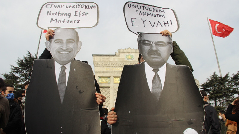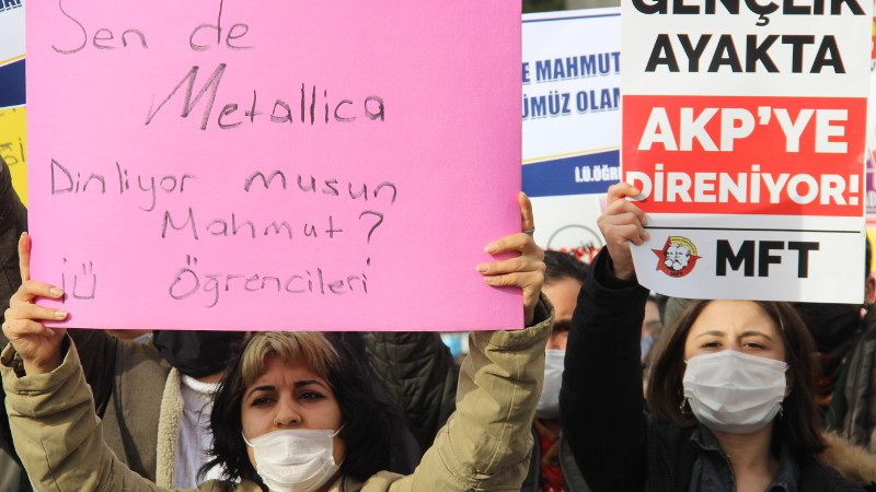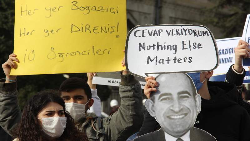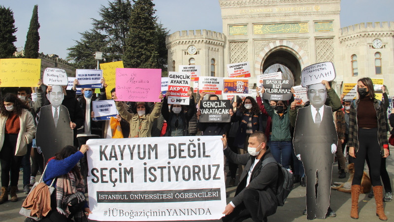 Yapılan eylemde; “Kayyum değil seçim istiyoruz. İstanbul Üniversitesi öğrencileri, #İÜBoğaziçininYanında” yazılı pankart açan öğrenciler, Boğaziçi Üniversitesi kayyum rektör Melih Bulu ve İstanbul Üniversitesi kayyum rektörü Mahmut Ak’ın maketlerini taşıdı. Eylemde, “Sen de Metallica dinliyor musun Mahmut?”, “Gençlik ayakta, AKP’ye direniyor”, “Gençlik yaratacak”, “Baskılar bizi yıldıramaz” sloganlarının öne çıktığı çok sayıda döviz açıldı.