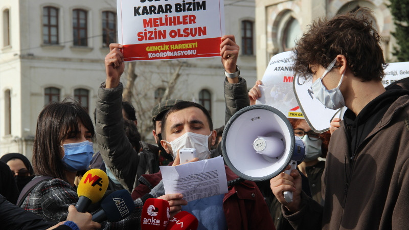 İstanbul Üniversitesi öğrencileri, Boğaziçi Üniversitesi öğrencileriyle dayanışmak için Beyazıt Ana Kapı önünde açıklama yaptı.
