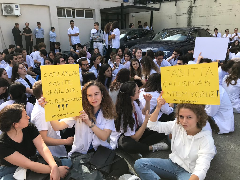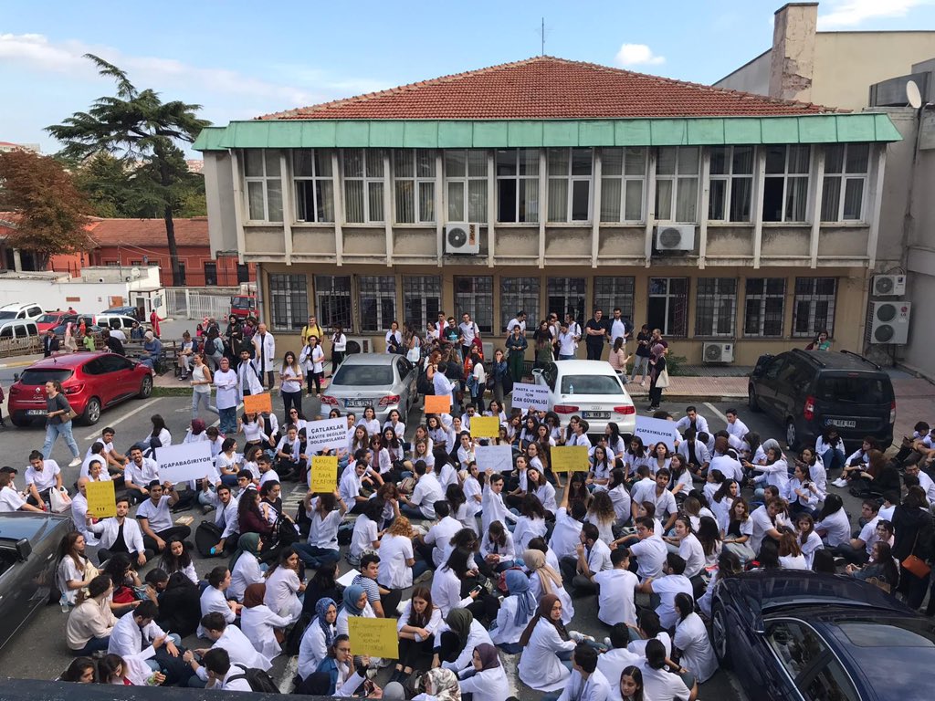 İstanbul Üniversitesi Diş Hekimliği Fakültesi'nde depremde oluşan hasarlar nedeniyle öğrenciler derslere girmeyerek oturma eylemi başlattı.