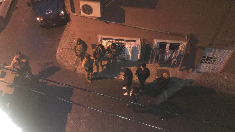 Etkin Haber Ajansı (ETHA) çalışanlarının kaldığı ev de kapısı kırılarak basıldı. İkameti evde bulunmayan bir kişi için yapılan ev baskınında gözaltına alınan olmadı.