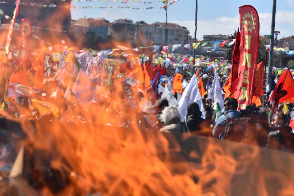 İSTANBUL – İstanbul’da Bakırköy Pazar Alanı’nda “Mutlaka kazanacağız, tecridi kıracağız” şiarıyla gerçekleştirilen Newroz’a katılmak isteyen onlarca kişi çeşitli gerekçelerle gözaltına alındı. Kimi gençler Halklar Önderi Abdullah Öcalan üzerindeki tecridi kırmak için fedai eylem gerçekleştiren Zülküf Gezen’in fotoğrafının bulunduğu tişörtler giydiği için gözaltına alındı, kimisi ise üzerinde bulunan sarı, kırmızı, yeşil renklerinden dolayı gözaltına alındı.