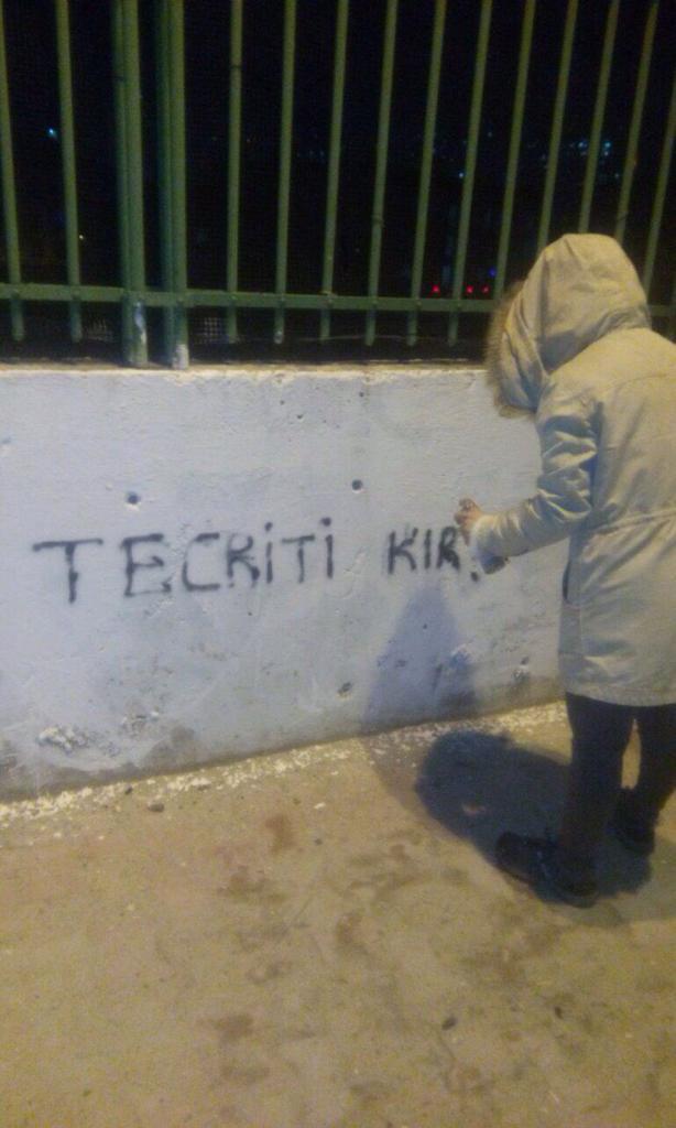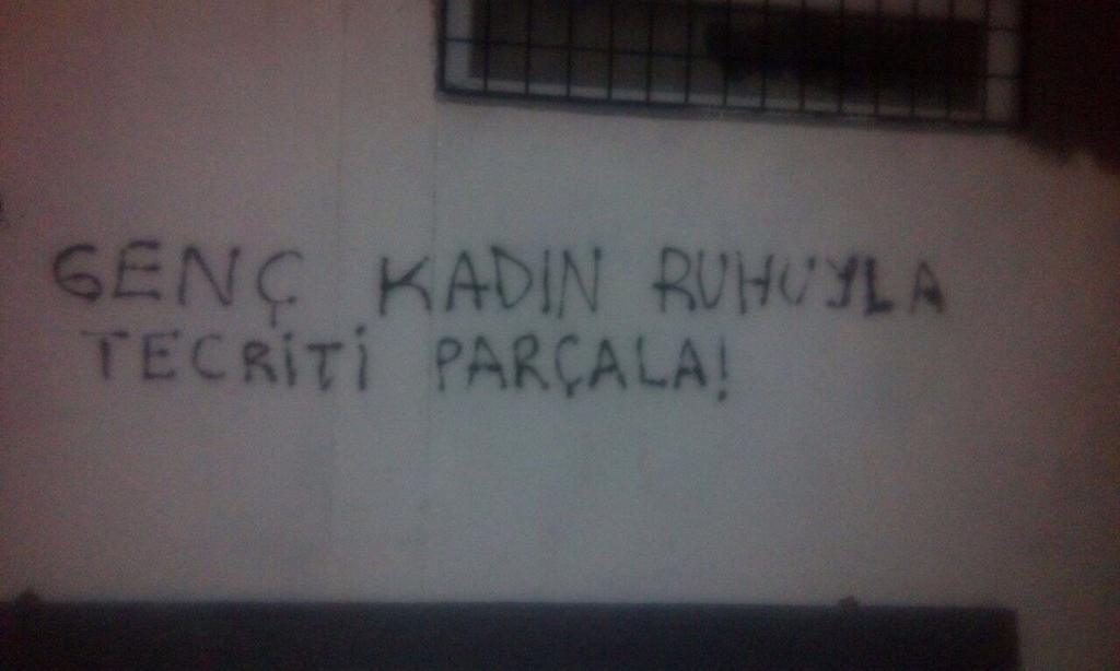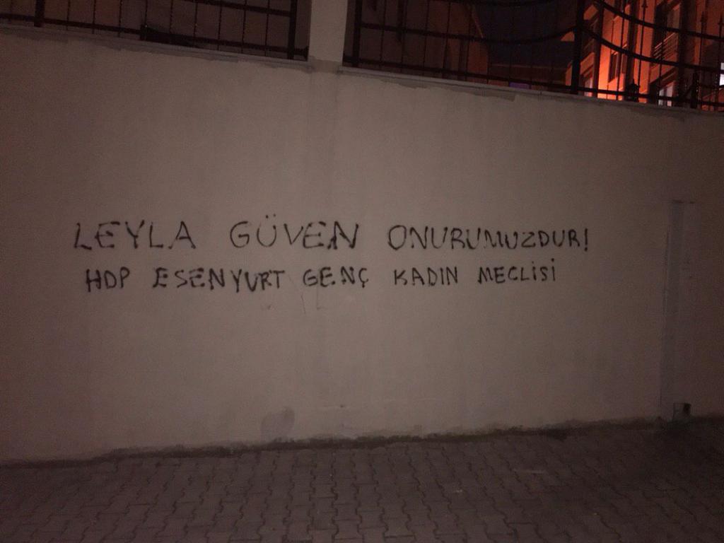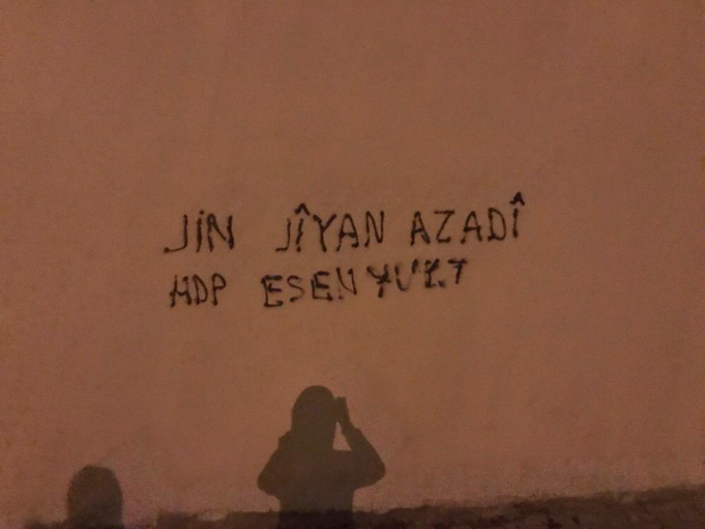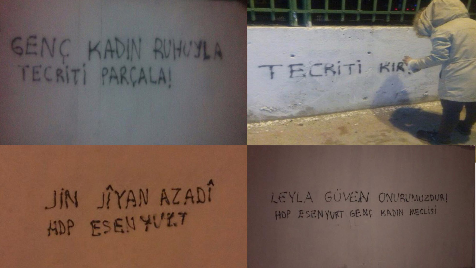 Gençler kadınlar duvarlara, “Genç Kadın Ruhuyla Tecridi Parçala”, “Tecridi Kır”, “Jin Jiyan Azadi” ve “Leyla Güven Onurumuzdur” yazılarını yazdı.