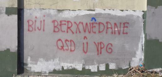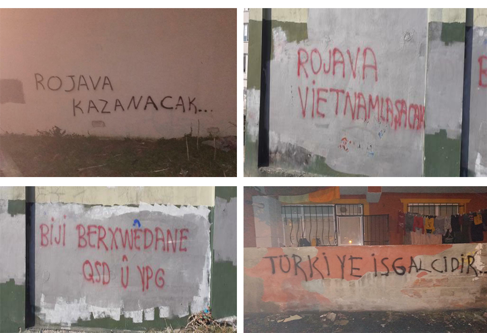 ” Rojava Kazanacak”, “Türkiye işgalcidir”, “Bijî Berxwedana QSD û YPG”, “Rojava Vietnamlaşacak” yazılamalarını yazdı.