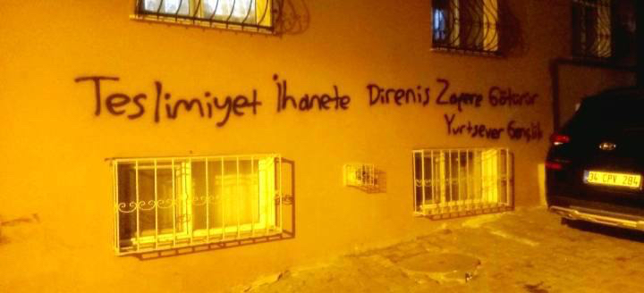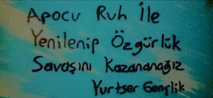 İSTANBUL- Yurtsever Gençlik akşam saatlerinde Önder APO’nun üzerindeki mutlak tecride ve Kürdistan Gerilla’sının verdiği özgürlük mücadelesine dikkat çekmek için ”Teslimiyet İhanete Direniş Zafere Götürür!”, ”Devrimci Halk Savaşı İle Özgürlüğe Doğru!”, ”An İntikam Anıdır!” sloganları ile yazılama gerçekleştirdi.