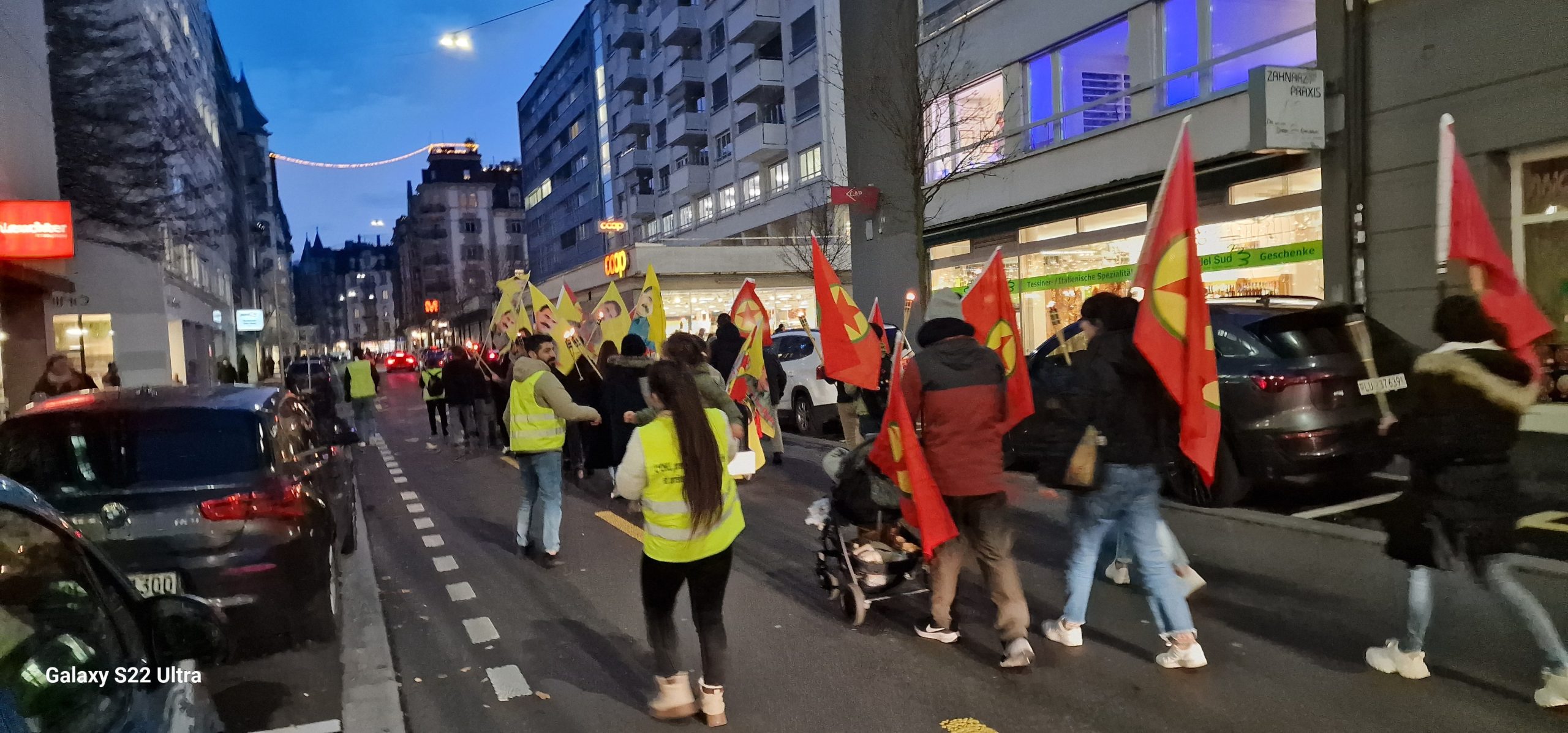 LUZERN – Luzern’de TCŞ ve TekoJIN’ın öncülüğünde, Luzern Demokratik Kürt Toplum Merkezi Meclisinin katılımıyla PKK’nin 46. yıldönümü için meşaleli yürüyüş düzenlendi.