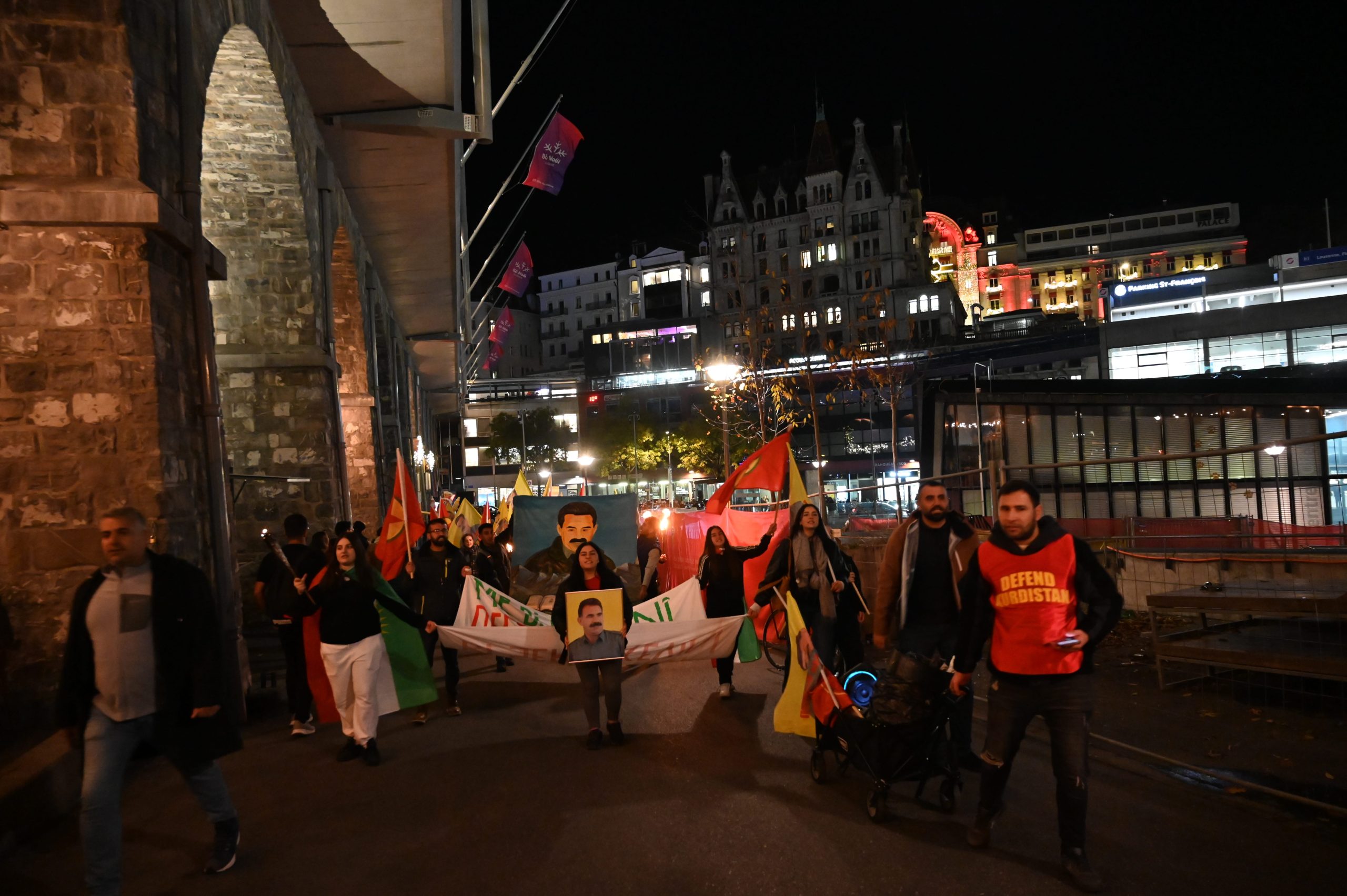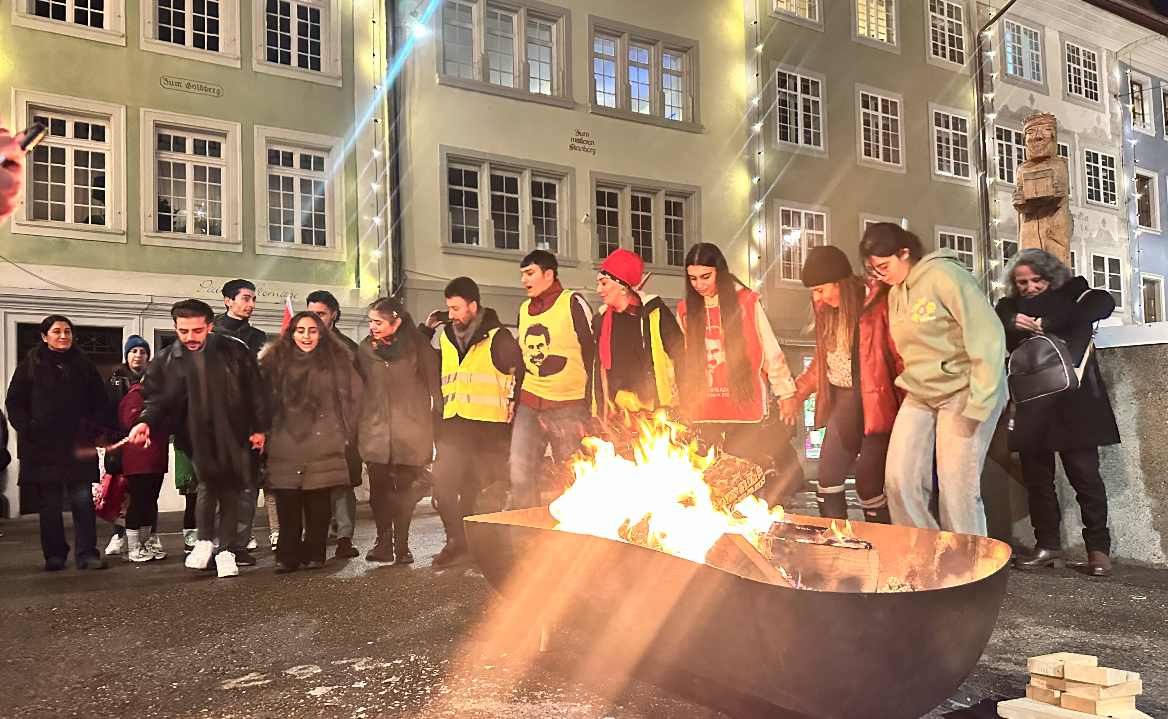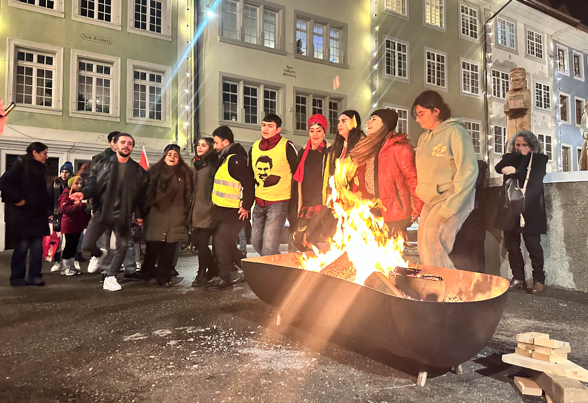 Tevgera Ciwanên Şoreşger (TCŞ) ve Jinên Ciwan ên Têkoşer (TekoJIN) öncülüğünde Montbenon Park’ta bir araya gelen Kürdistanlılar düzenledikleri meşaleli yürüyüşle 27 Kasım Kürt halkının Diriliş Bayramı’nı kutladı.