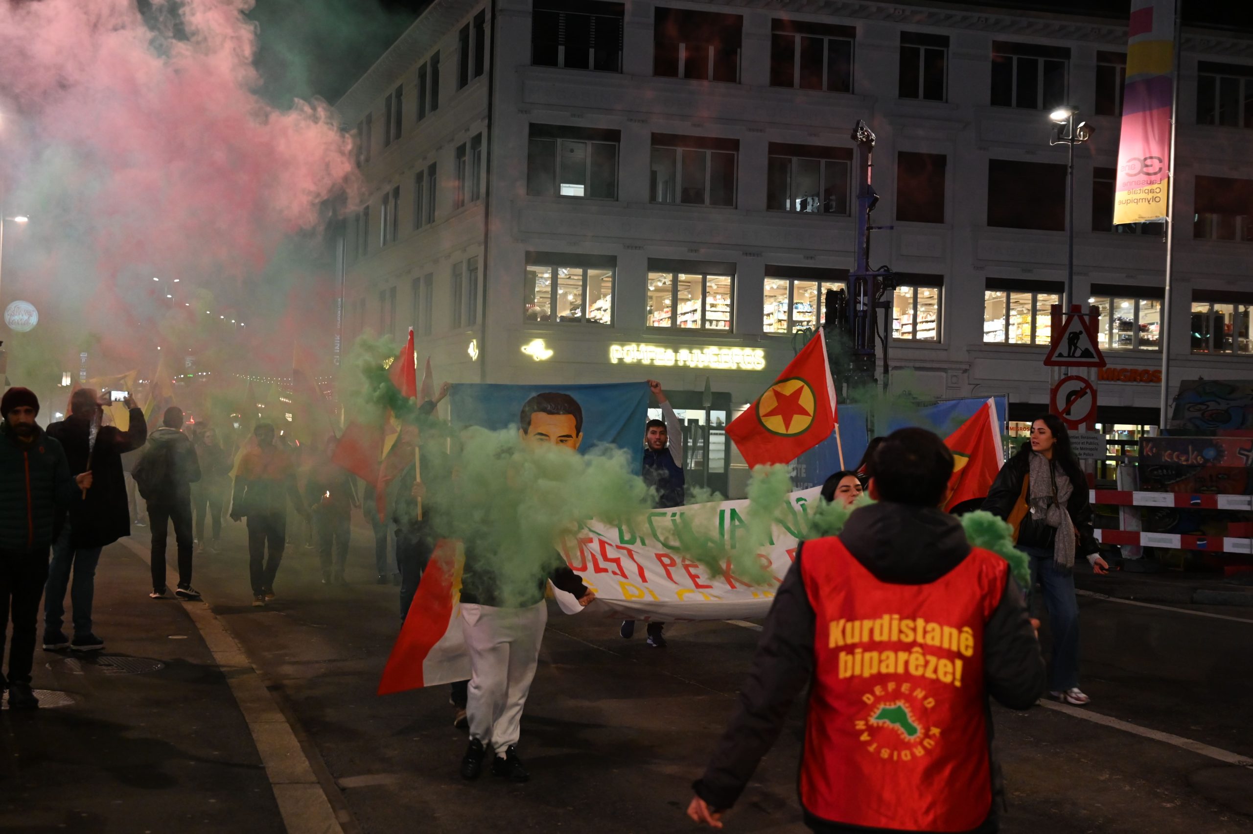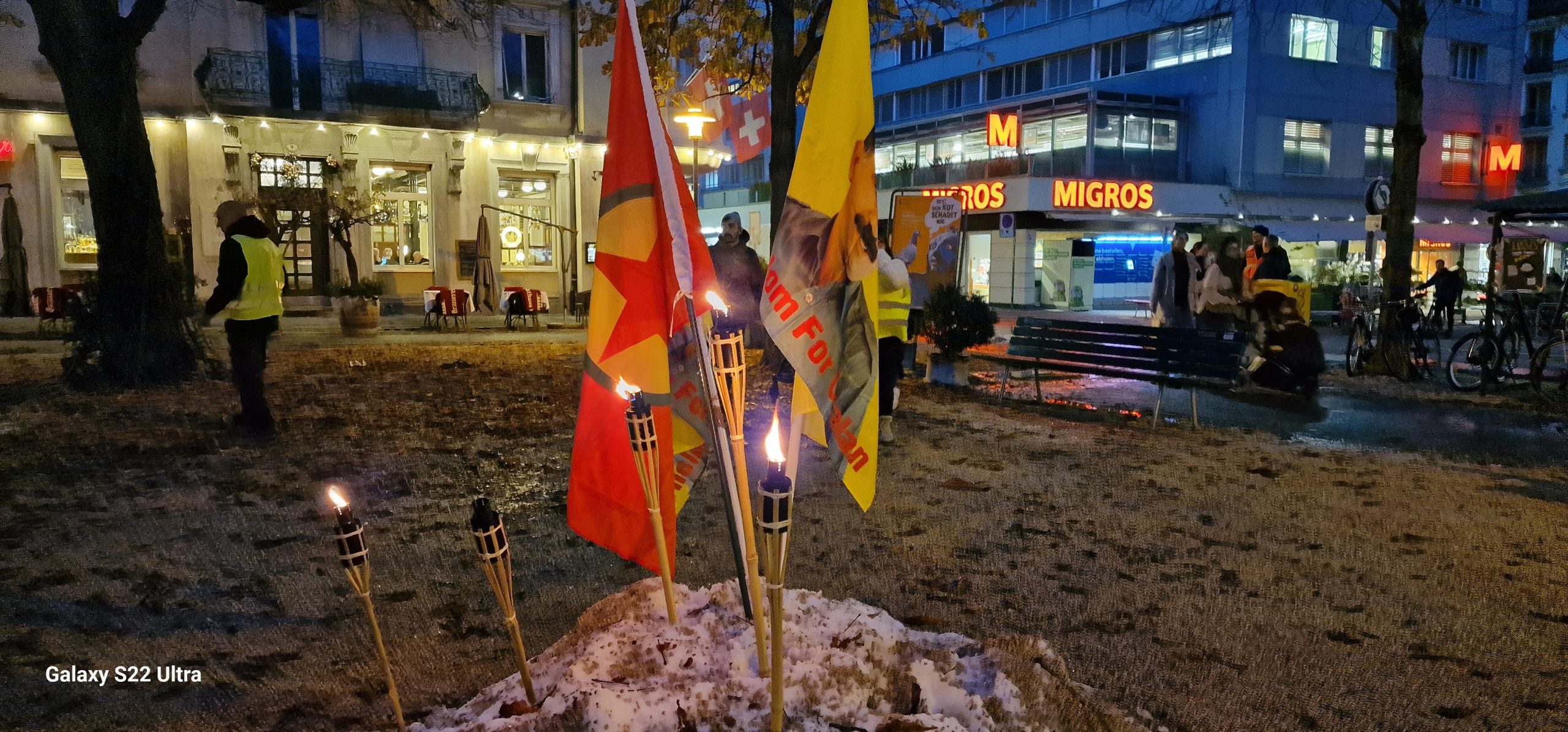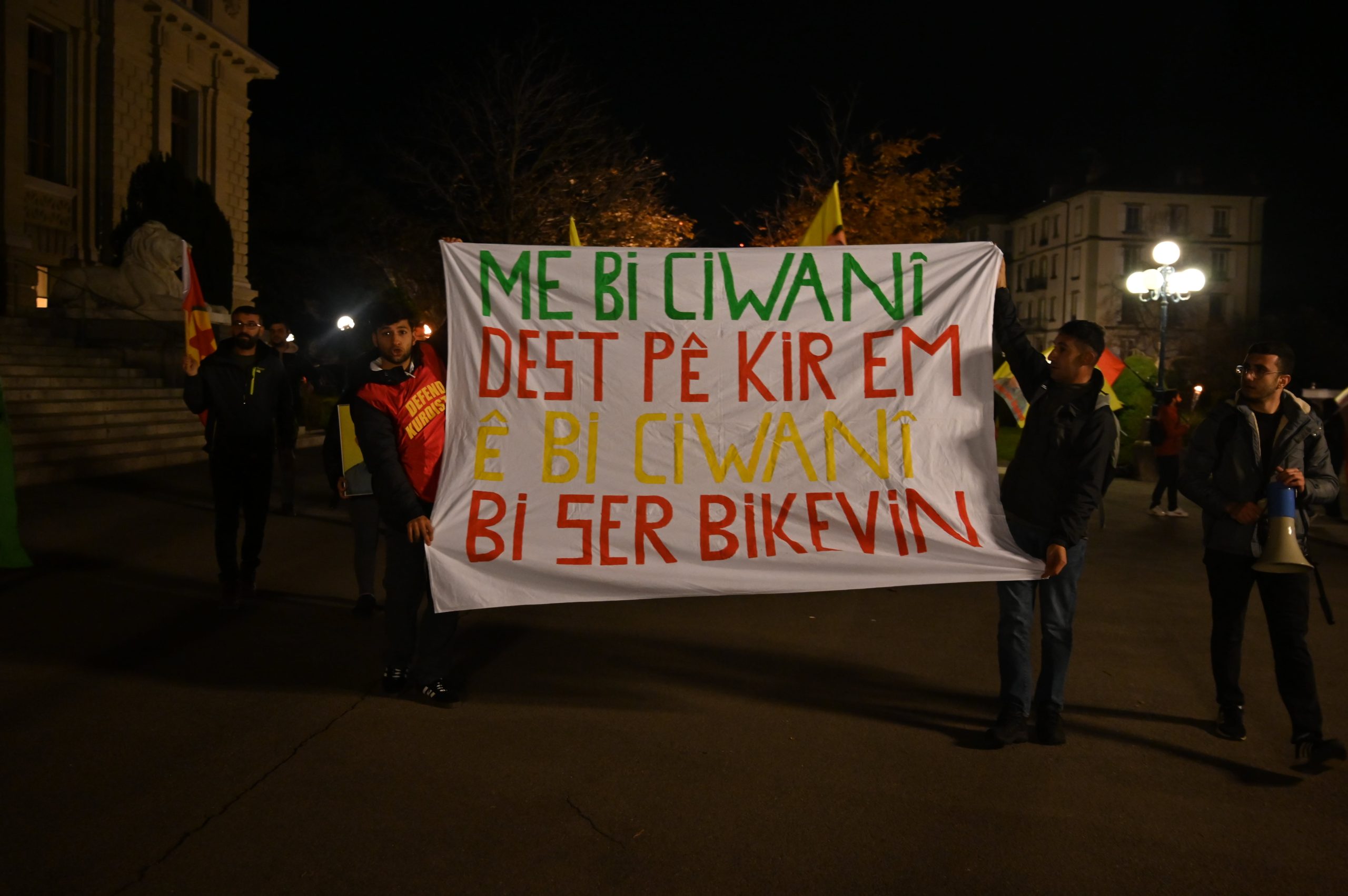 Tevgera Ciwanên Şoreşger (TCŞ) ve Jinên Ciwan ên Têkoşer (TekoJIN) öncülüğünde Montbenon Park’ta bir araya gelen Kürdistanlılar düzenledikleri meşaleli yürüyüşle 27 Kasım Kürt halkının Diriliş Bayramı’nı kutladı.