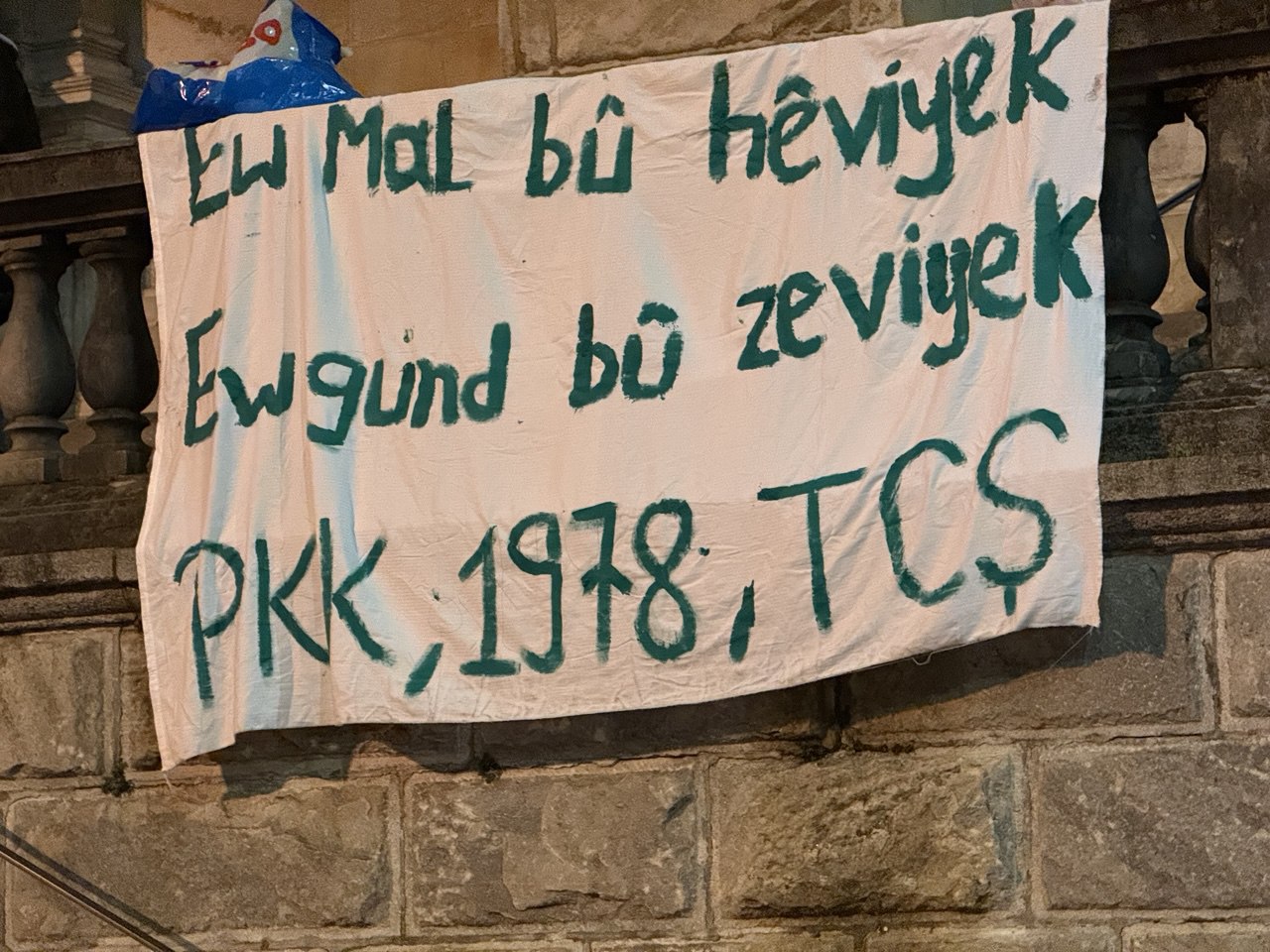 “Kürdistan’ın dört parçaya ayrılma kararı verilen Lozan’da TCŞ üyeleri olarak PKK’nin kuruluş yıldönümünü kutluyoruz. Dağlarda savaşan ve zindanlarda direnen tüm yoldaşlara kutluyoruz.“