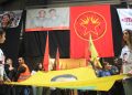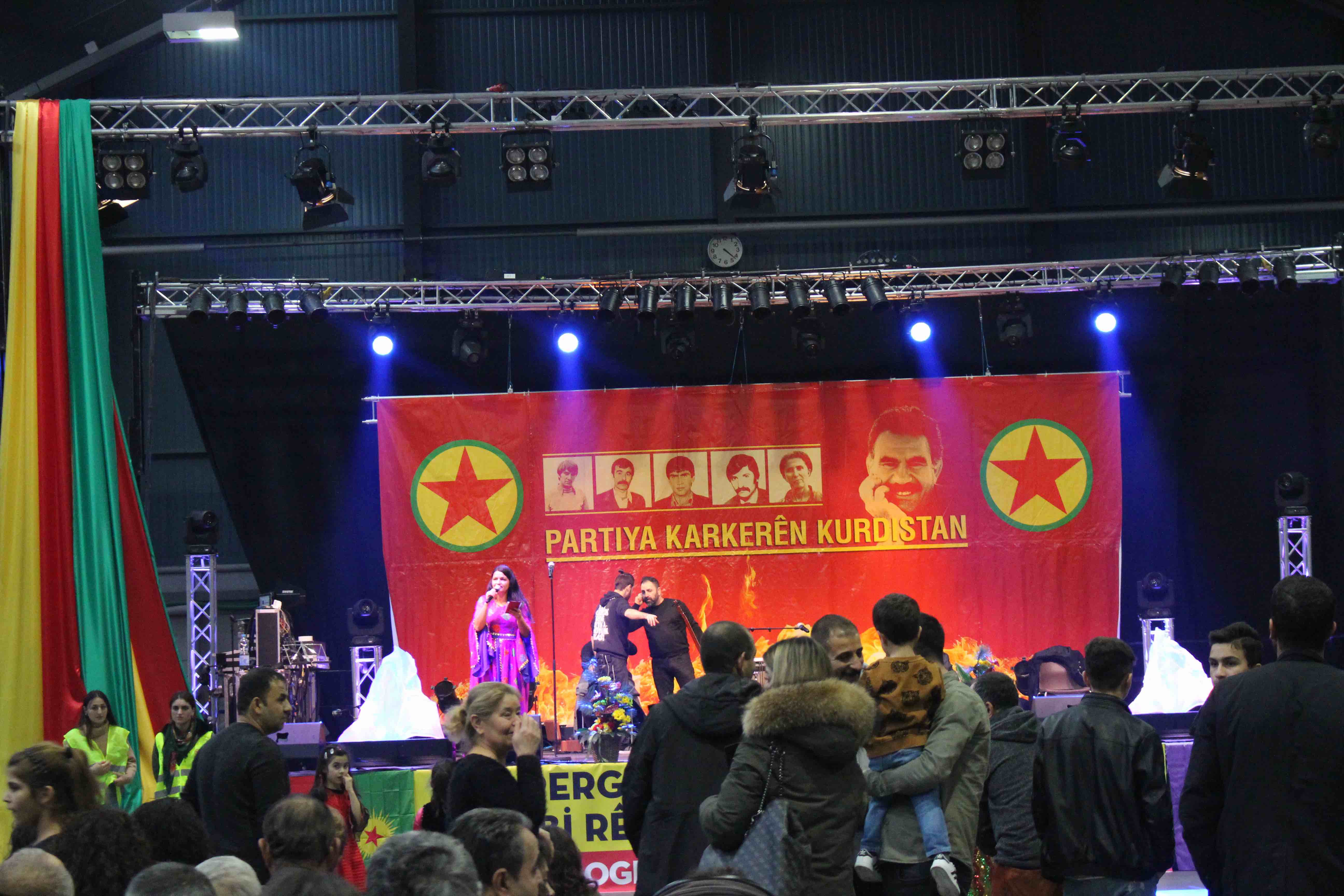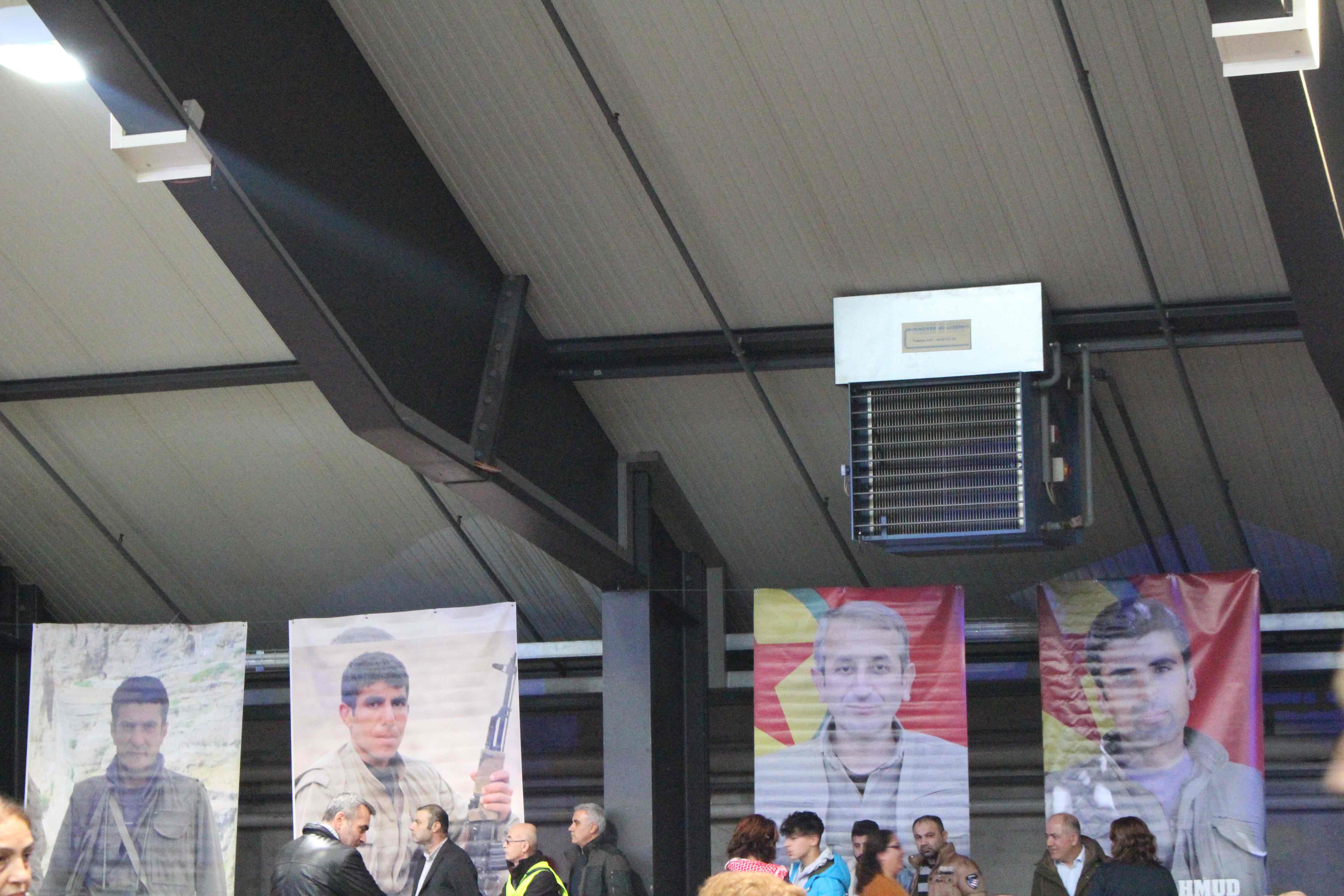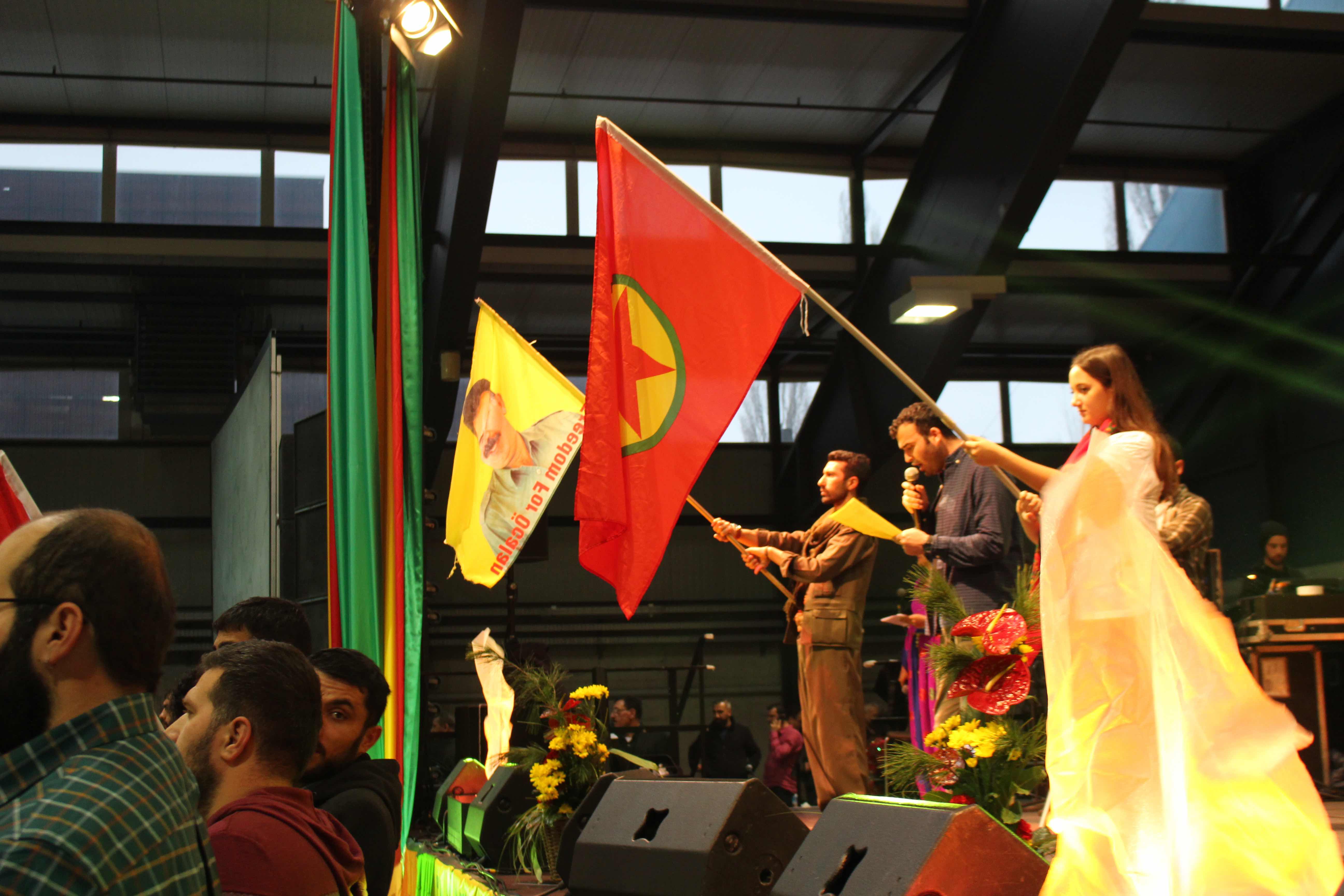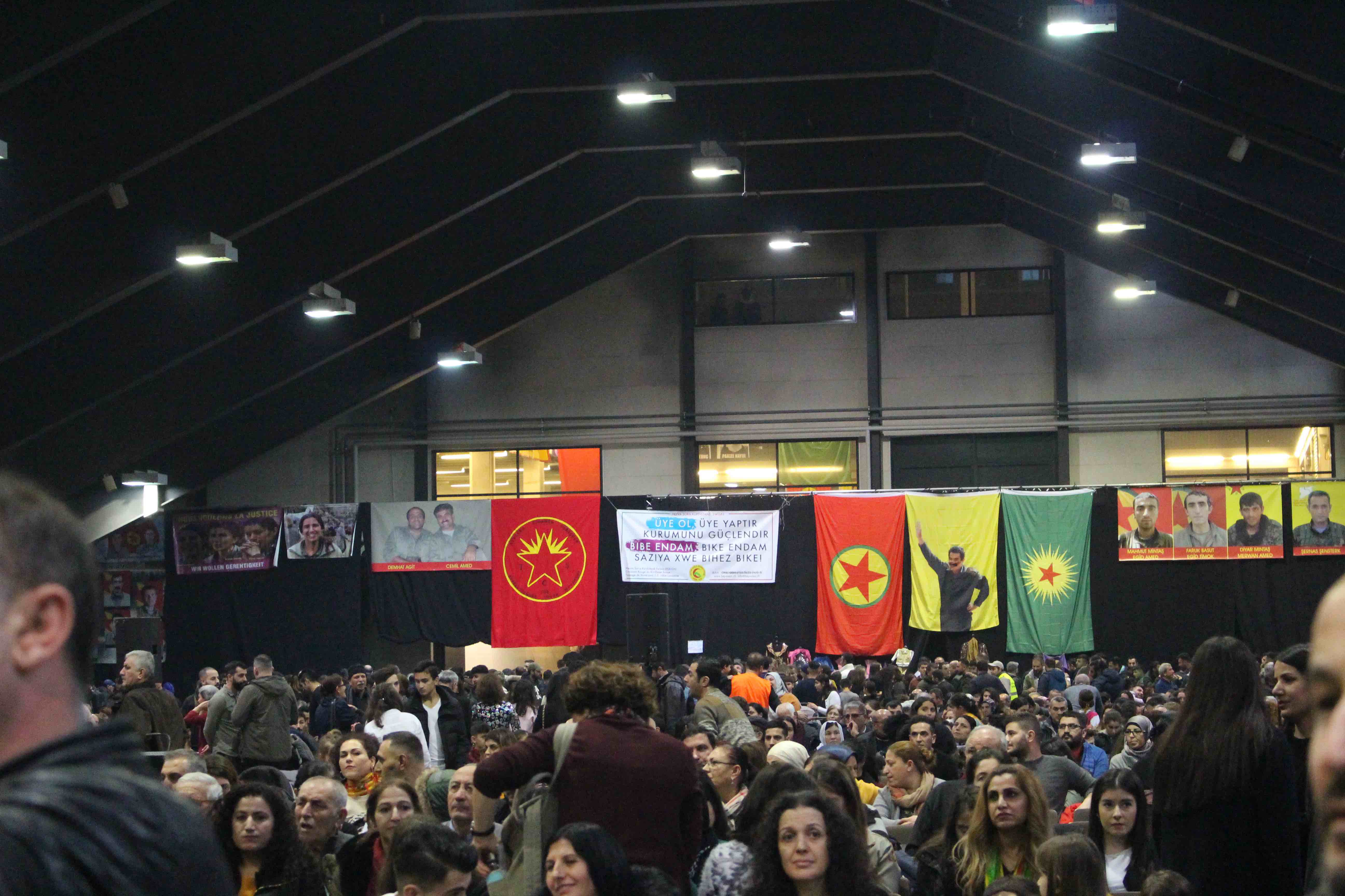 Etkinliğin düzenlendiği Luzern Spor Salonu, Halklar Önderi Abdullah Öcalan, PKK’nin öncü kadroları ve özgürlük mücadelesinde şehit düşen savaşçıların posterlerinin yanı sıra PKK, KCK, YPG, YPJ ve TCŞ bayrakları ile süslendi.