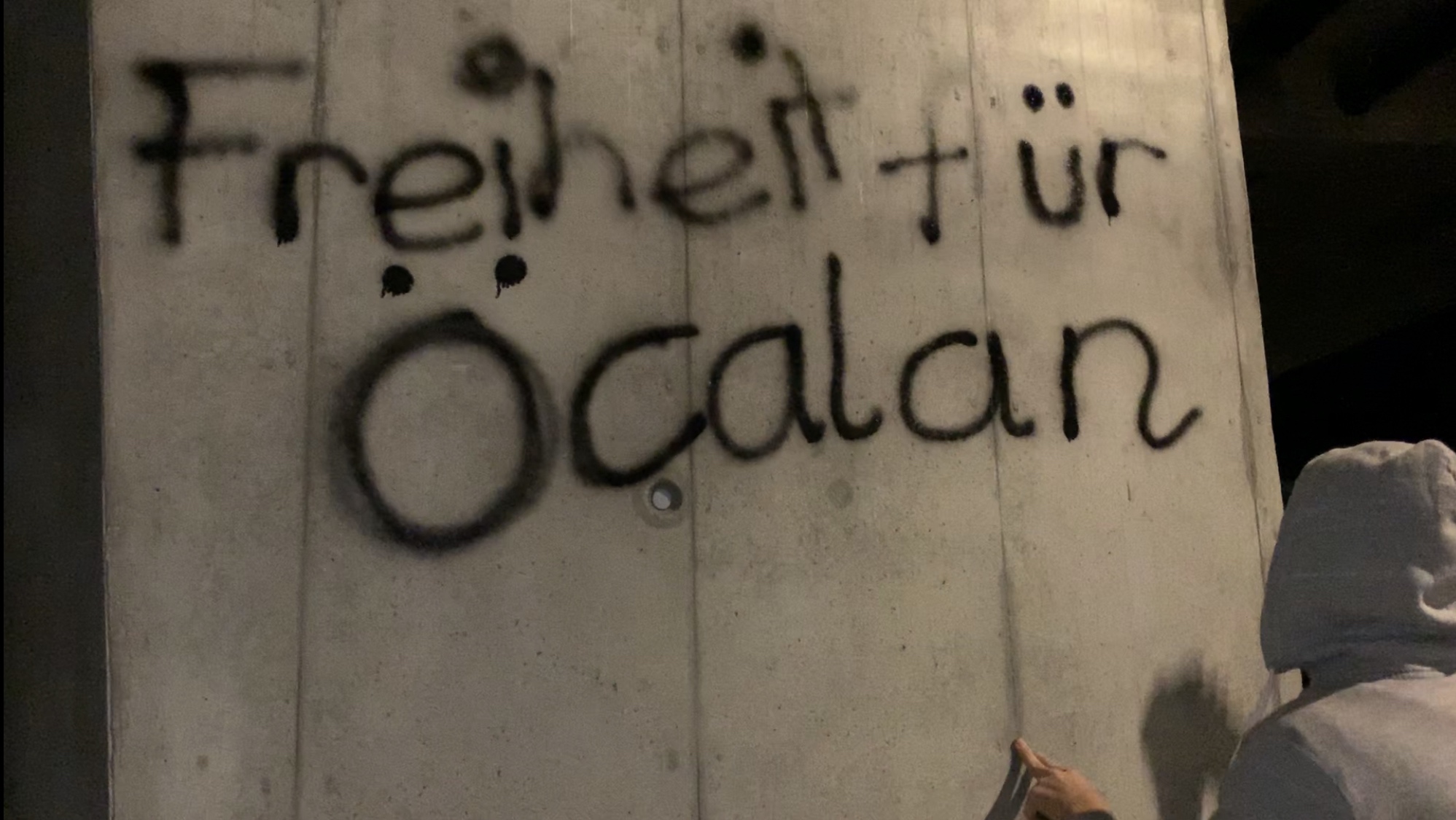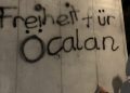 Akşam saatlerinde bir araya gelen gençler şehrin merkezi noktalarında Almanca ‘Öcalan’a Özgürlük’ yazılaması ve duvarlara spreyle Öcalan’ın resmini çizdiler.
