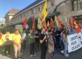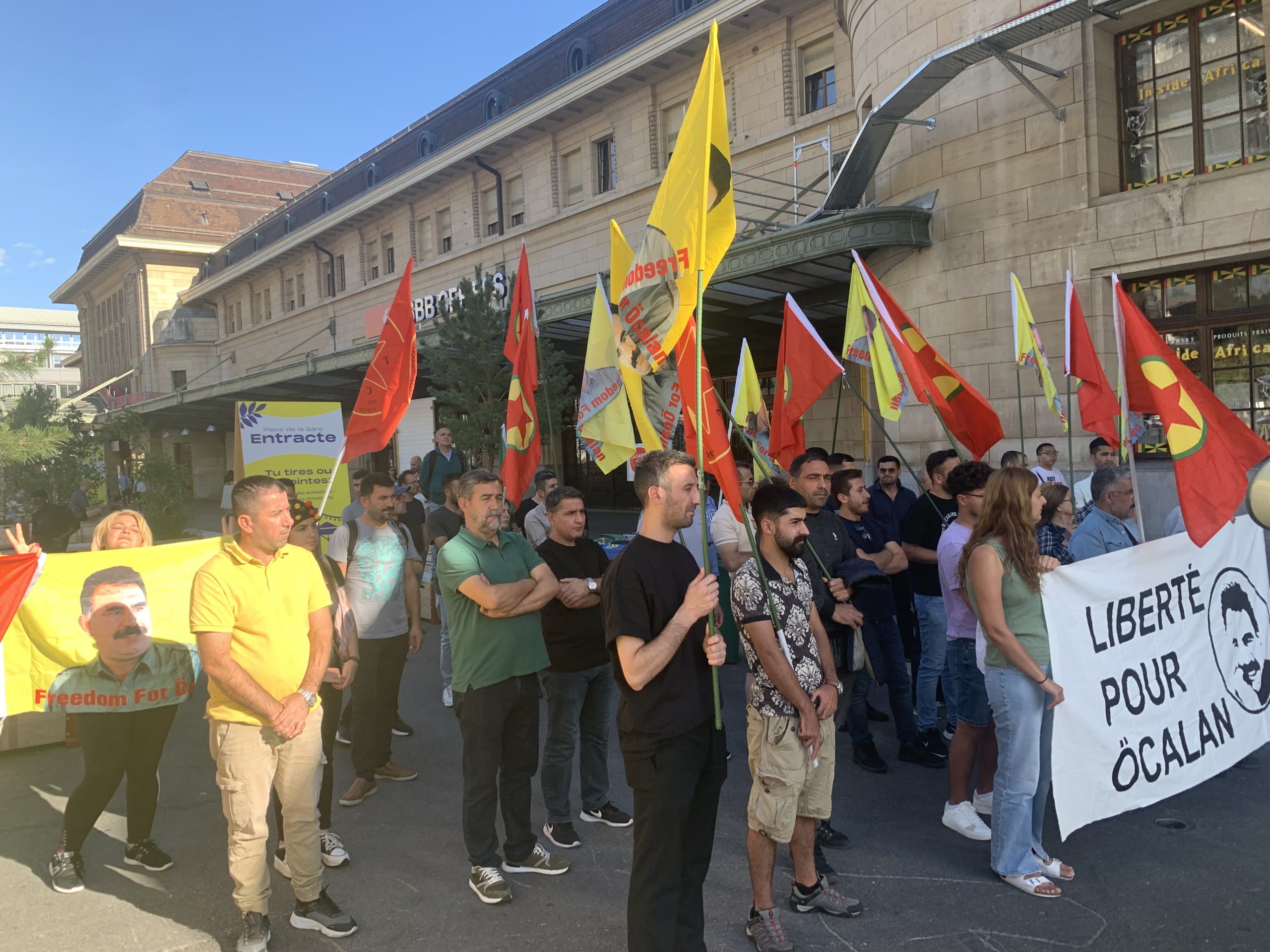 Sık sık Önder APO’nun fiziki özgürlüğünün talep edildiği sloganların atıldığı eylemde, Fransızca basın metni okundu.