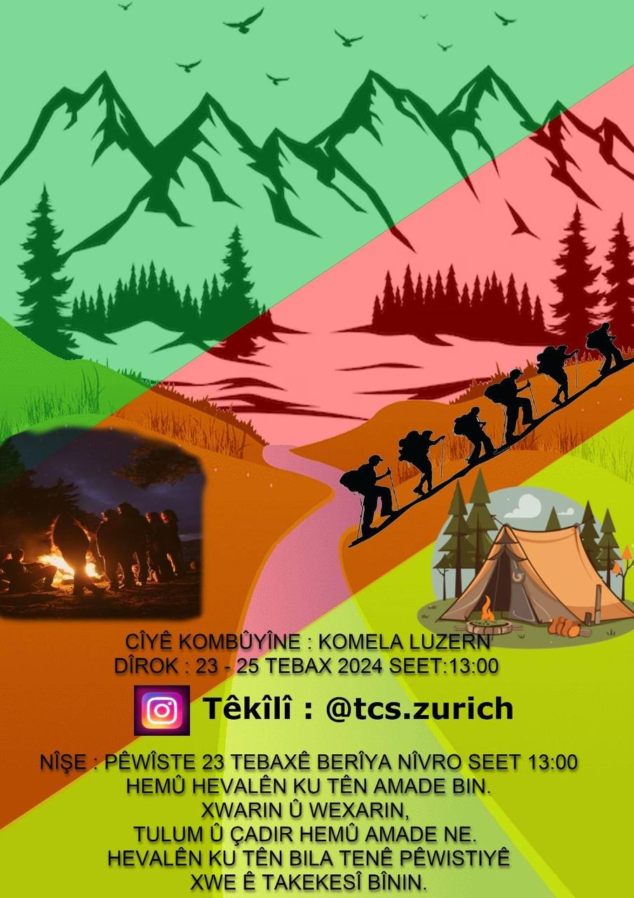 LUZERN- İsviçre’nin Luzern şehrinde TCŞ (Tevgera Ciwanên Şoreşger) ve TekoJIN (Jinên Ciwanên Têkoşer) ilk kez yapılacak olan 2 günlük kültür ve doğamız gezisine katılmak için yurtsever Kurdistan gençliğine çağrıda bulundu.