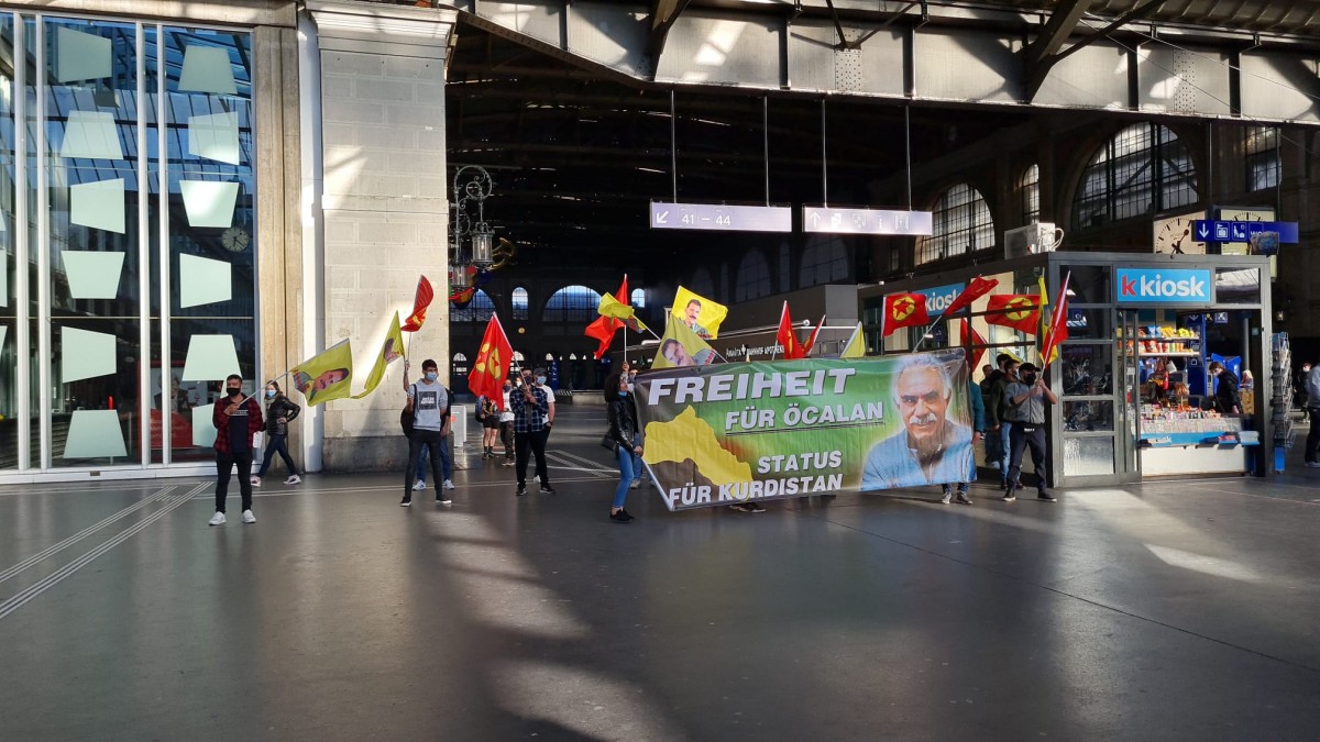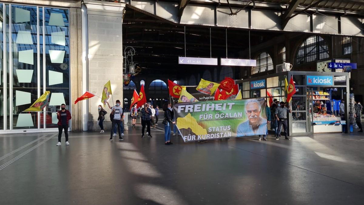 İSVİÇRE – İsviçre’nin Zürih şehrinde bir araya gelen TCŞ ve TekoJIN aktivisti gençler 2 ayrı eylem gerçekleştirdi. Merkezi tren istasyonu önünde bir araya gelen gençler, 22 yıldır sistematik ve ağır tecridin son bulması ve Önder Öcalan’ın fiziki özgürleşmesi talebiyle bir eylem gerçekleştirdiler.
