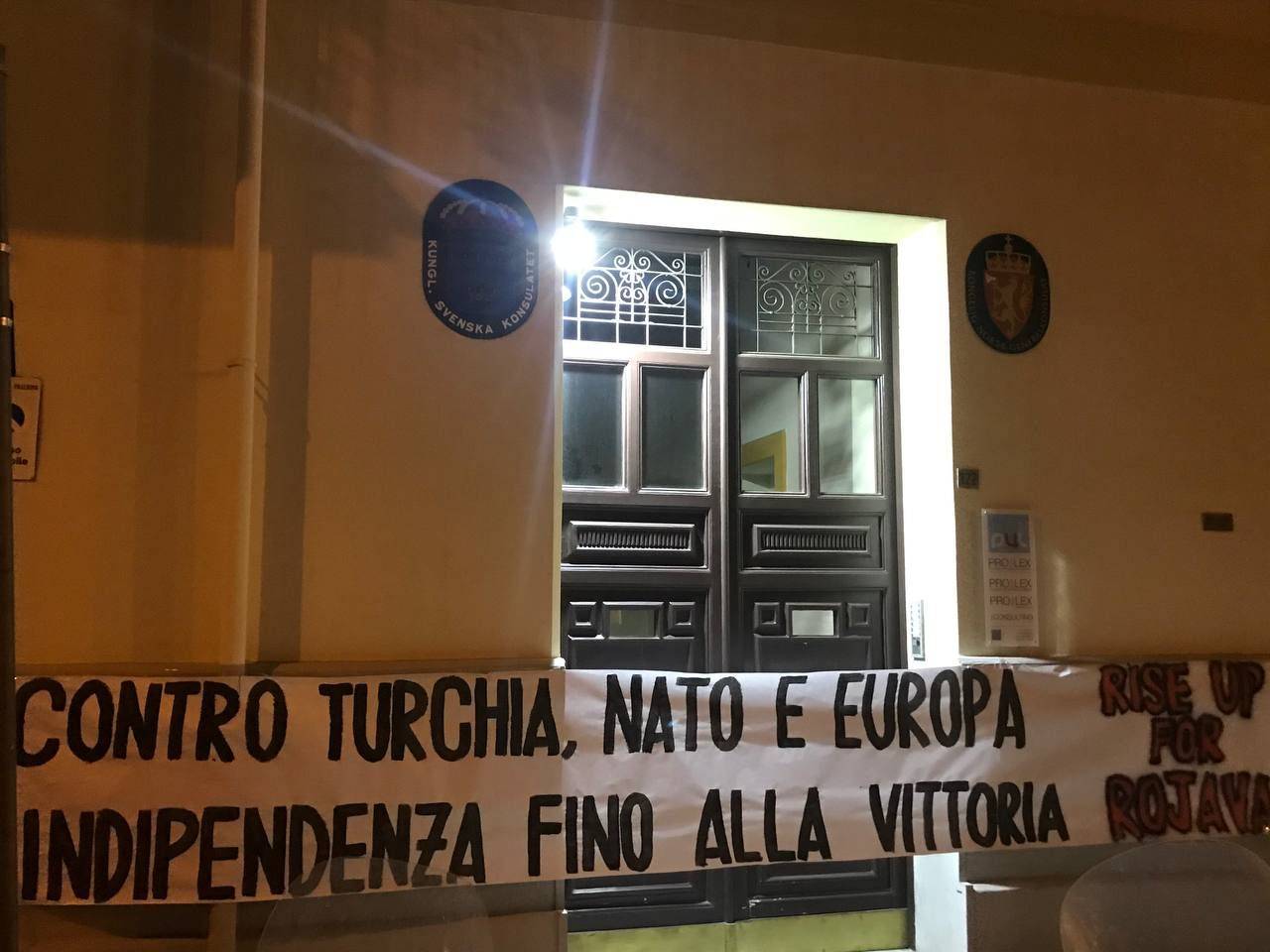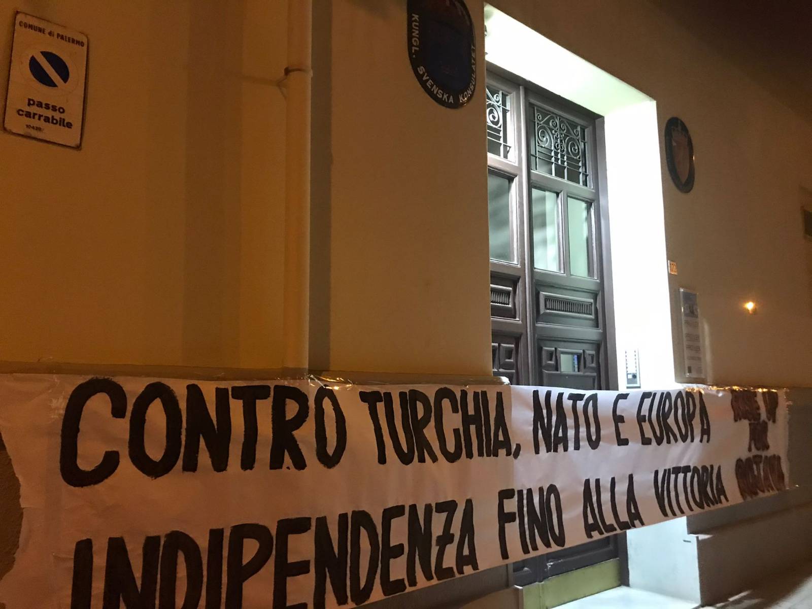 Gençler ayrıca son dönemlerde Medya Savunma Alanlarında faşist TC devleti tarafından, destansı direniş sergileyen gerillaya karşı yapılan saldırıları protesto etmek için Sicilyalı örgüt olan ANTUDO ile birlikte İsveç ve Finlandiya konsolosluklarına pankart asma eylemi gerçekleştirildi.