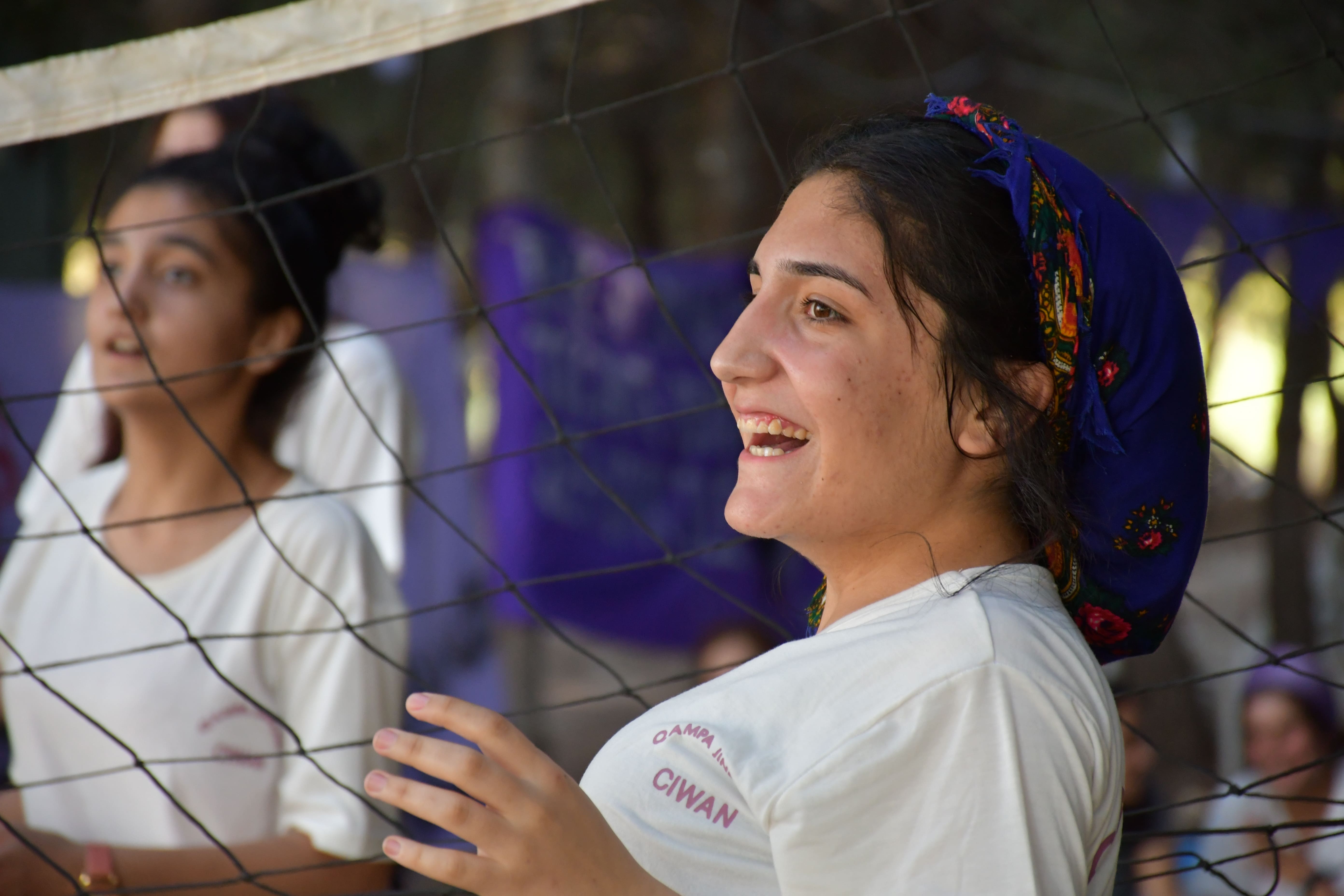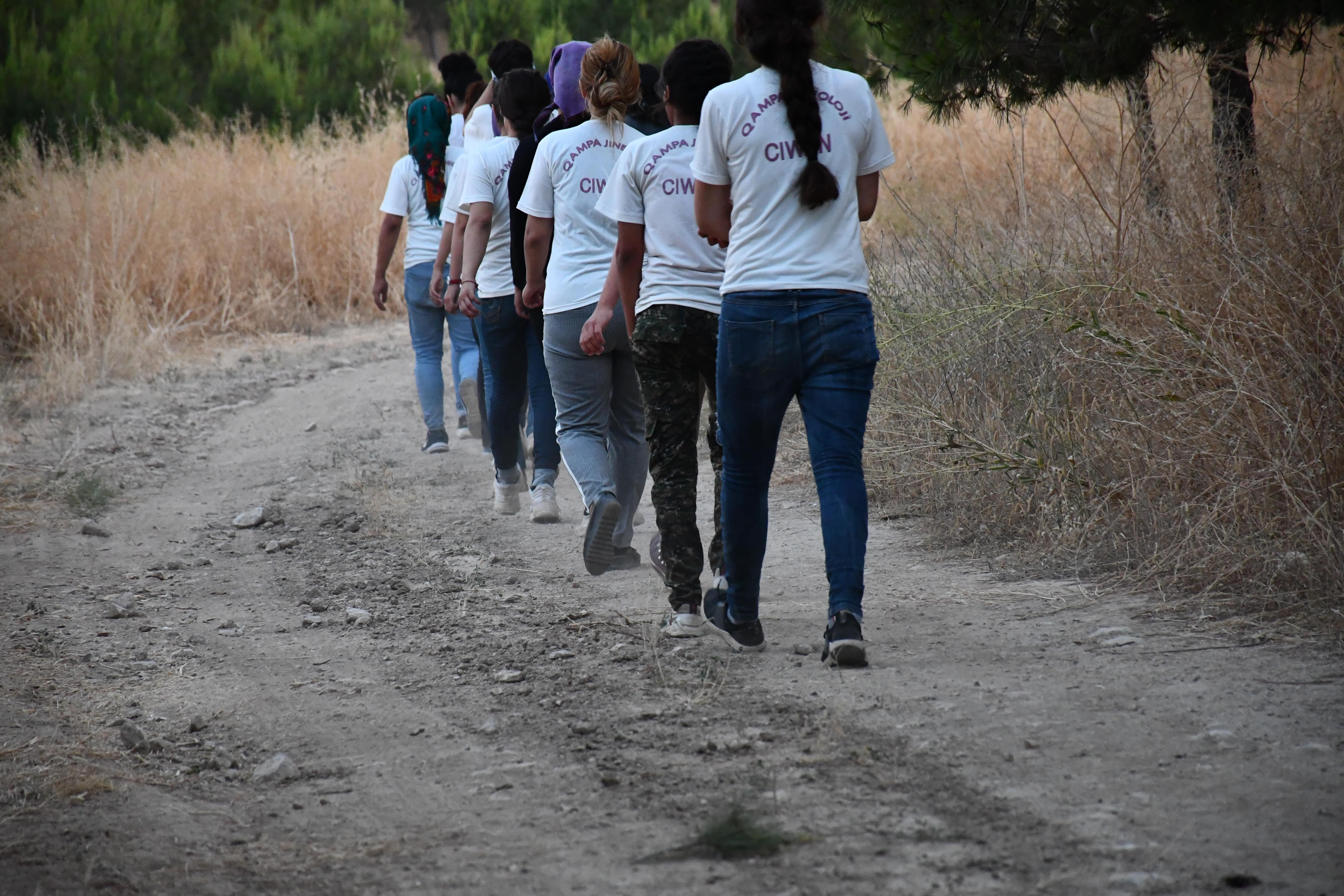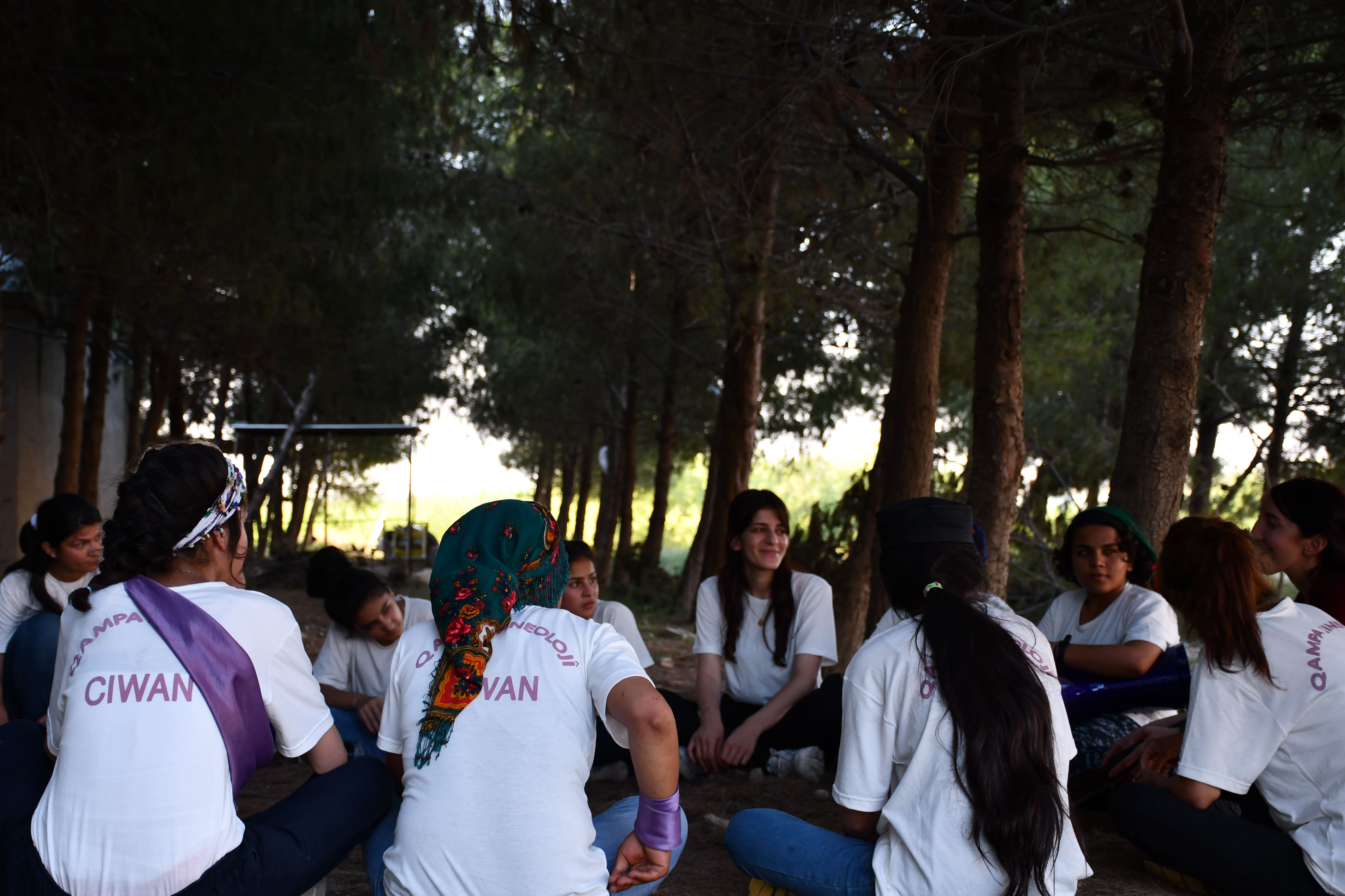 Dolu dolu geçen bir günün ardından, kampa doğru yola koyuluyoruz. Güzel bir doğa ve bütün heyecanlarıyla genç kadınlar özgürlük şarkıları söyleyerek kampa geri dönüyor.