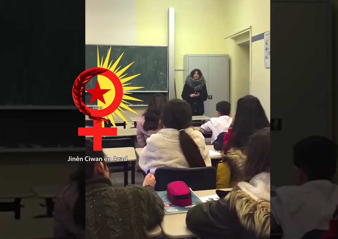 Almanya’nın Duisburg şehrinde yaşayan JCA aktivisti bir genç kadın gittiği bir ortaokulda genç öğrencileri Paris eylemine çağırdı.