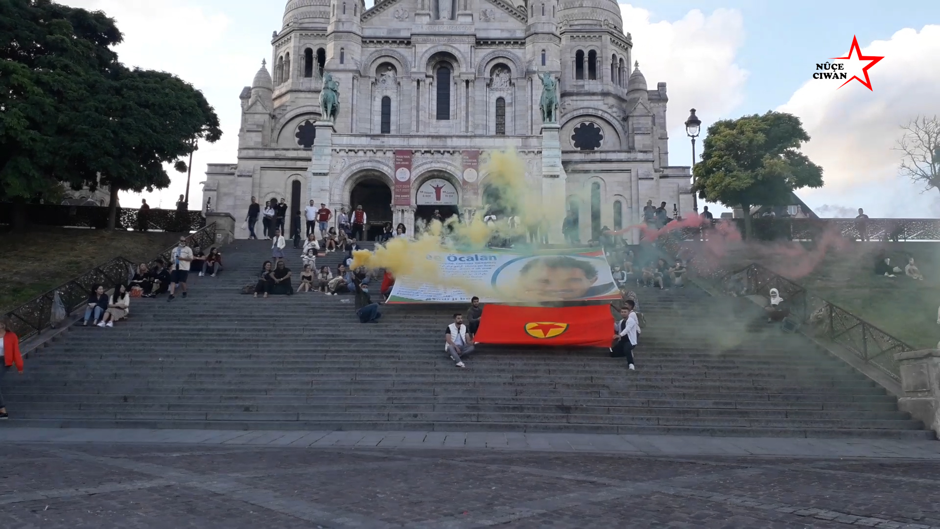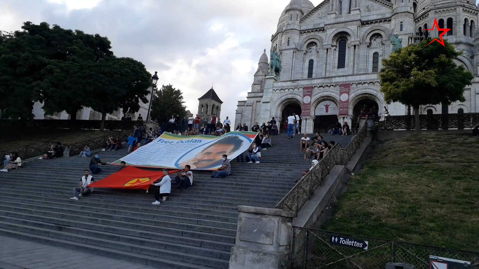Akşam 19.30’da Paris’in sembol yerlerinden olan Sacre Coeur Bazilikası önünde bir araya gelen gençler burada eylemlerine başladı. Üzerinde farklı dillerde büyük boy “Öcalan’a özgürlük” yazılı pankart ve büyük bir PKK bayrağı açan gençler, kilise merdiveninde ve kalabalık bir anda eylemlerini gerçekleştirdi. Sık sık Fransızca ve Kürtçe, “Öcalan’a özgürlük”, “Kürdistan’a statü” ve “Katil Erdoğan” sloganlarının atıldığı eylem, çevredeki insanların dikkatini çekti. Renkli sislerin de kullanıldığı eylemde gençler, kilisenin önünde bir süre daha eylemlerine devam ettikten sonra buradan şehir merkezine doğru bir yürüyüş gerçekleştirdi.