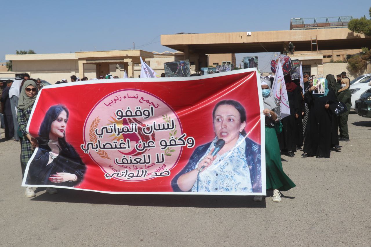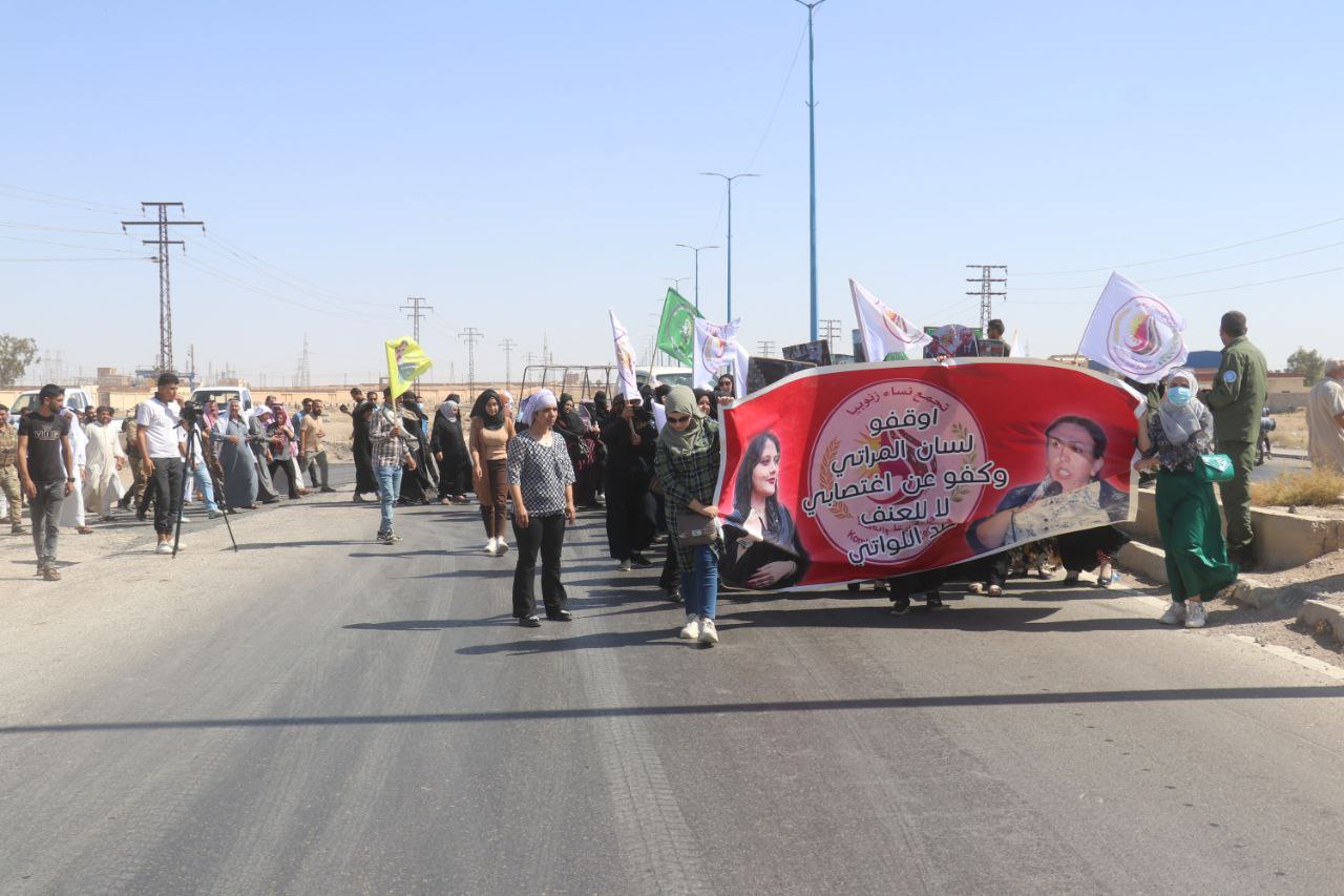 Yürüyüşte, Dêrazor Sivil Meclisi adına Dêrazor Kantonu Vergi Müdürlüğü Eş Başkanı Rehma Elî Elî, Jîna Emînî davasının İran ve dünya genelinde yankı uyandırdığını, ayrıca bu dava konusunda uluslararası bir soruşturma başlatılması ve katillerden hesap sorulmasını istedi.