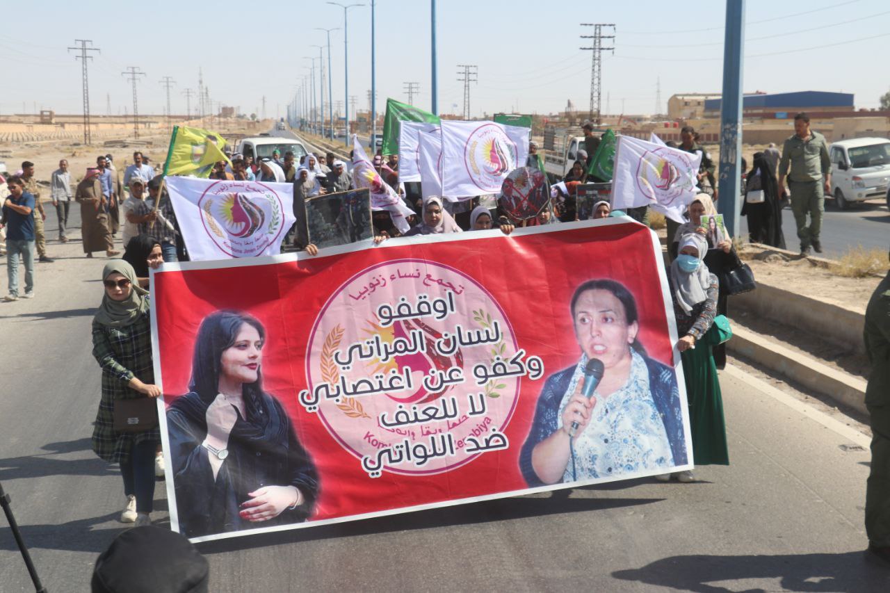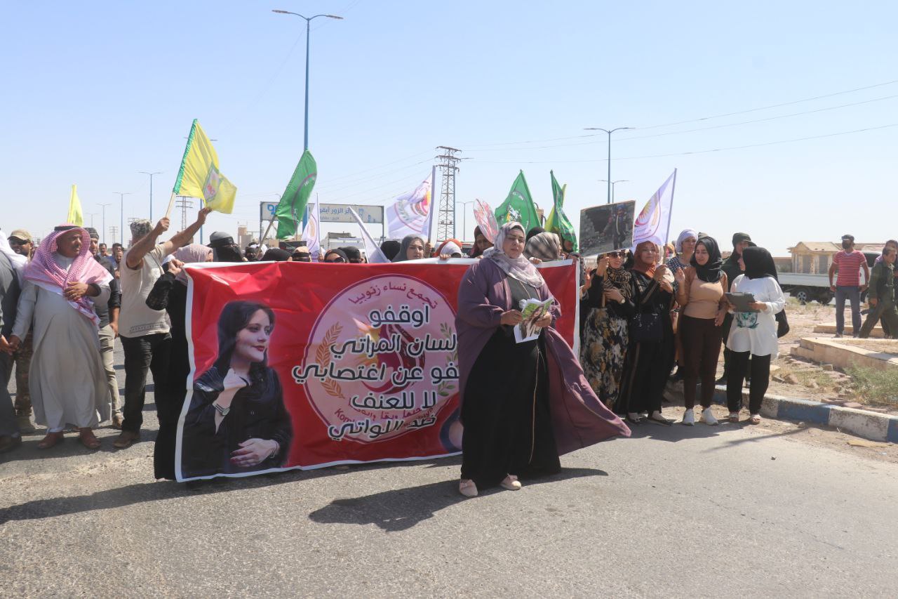 DERAZOR- Jîna Emînî’nin İran güçleri tarafından katledilmesinin ikinci yıl dönümü dolayısıyla Dêrazor Kantonu’ndan onlarca yurttaş yürüyüş düzenledi.
