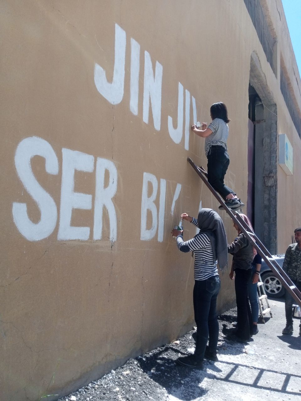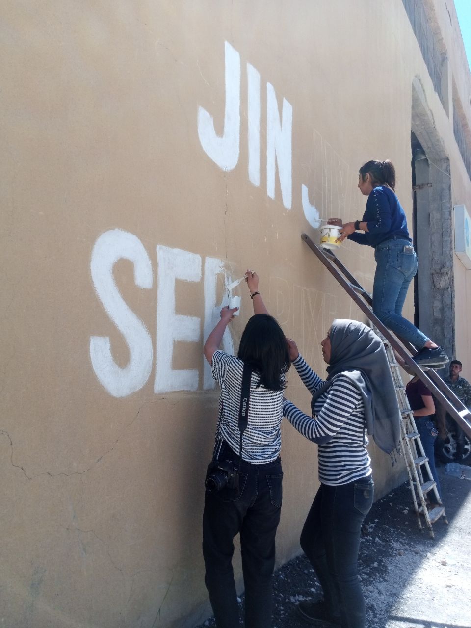 Komalên Jinên Ciwan’ın duyurduğu yeni kampanya “Jin Jiyan Azadî Serbixe Azadî” için Kobanê’li genç kadınlar harekete geçti. Kobanê Yekîtiya Jinên Ciwan üyeleri kampanyaya dikkat çekmek için duvarlara “Jin Jiyan Azadi Serbixe Azadi” yazdı.